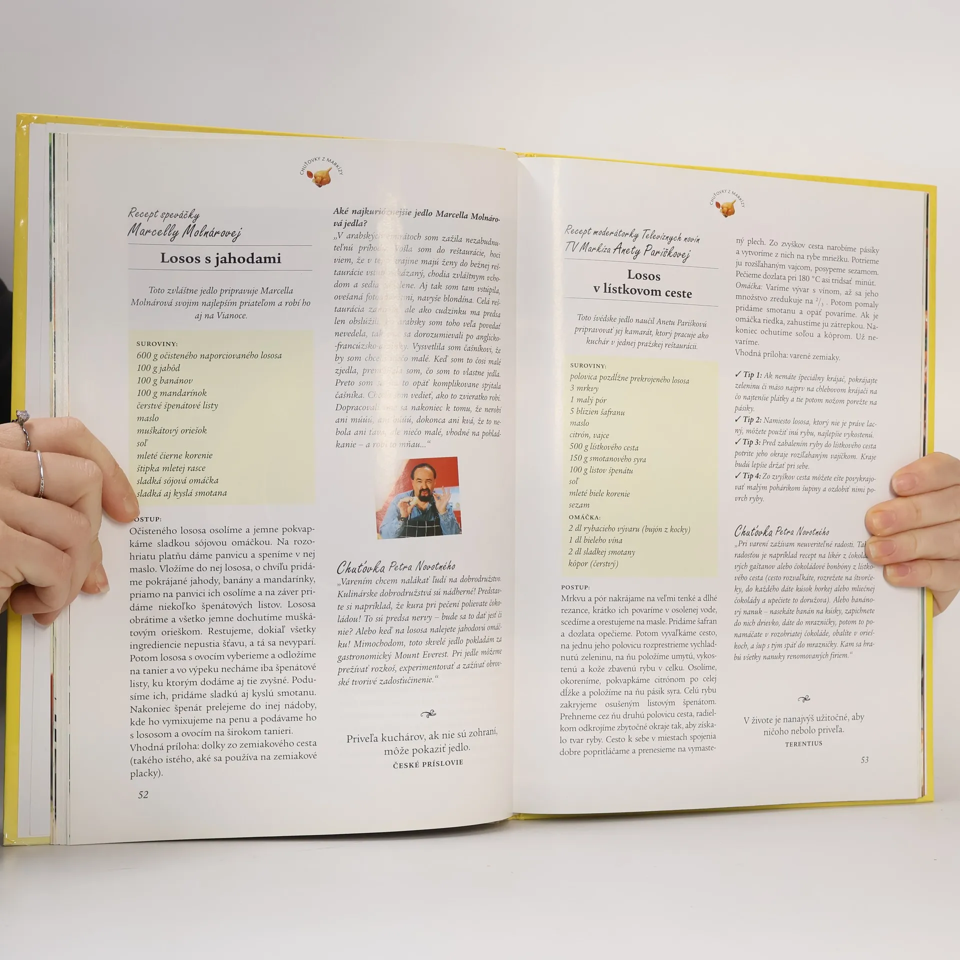 Pri varení zažívam neuveriteľné radosti. Na divákov, poslucháčov i čitateľov prenášam nielen kulinárske skúsenosti, ale najmä hlad. A chcem na nich preniesť ešte niečo, chcem všetkým povedať, že jedlo nie je súčasťou metabolického procesu, ale omnoho viac, je to kultúra, pôžitok, sviatok. A chcem poradiť ako na to, aby si všetci z jedla urobili mimoriadnu chvíľu a mali slávnostný pocit. Zostavovateľka: Darina Maláková.