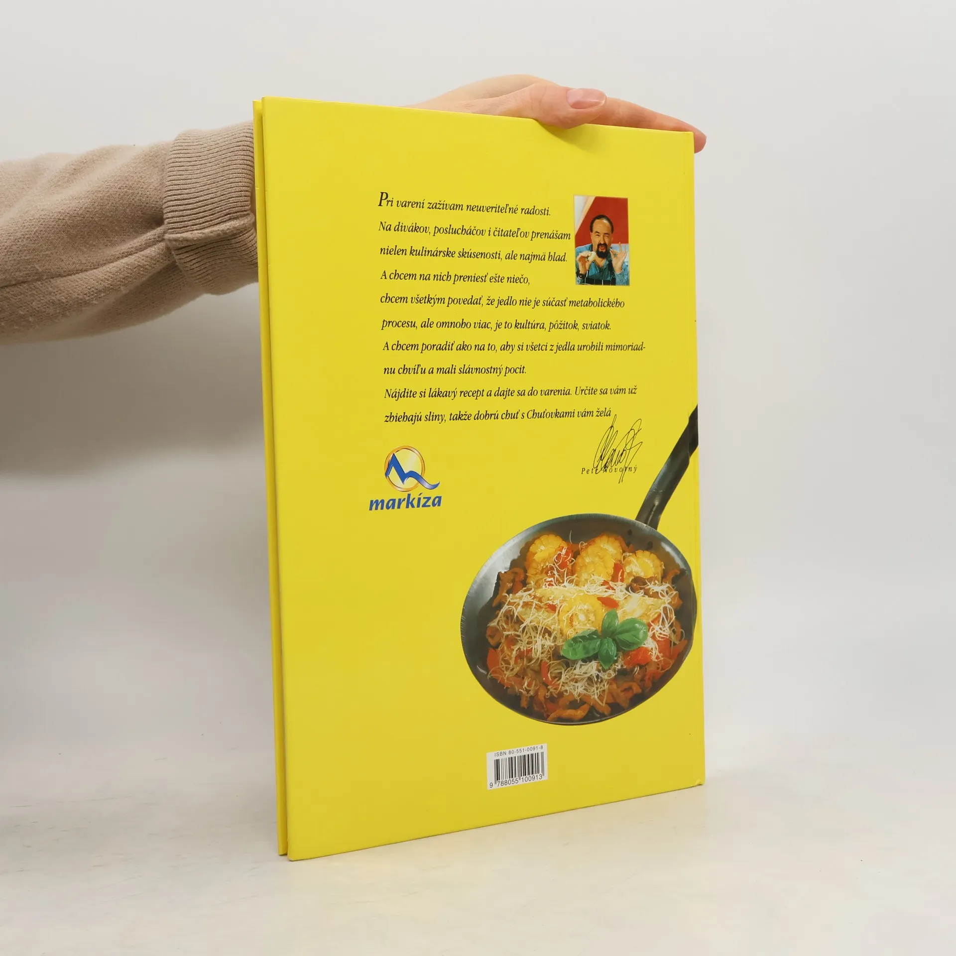 Pri varení zažívam neuveriteľné radosti. Na divákov, poslucháčov i čitateľov prenášam nielen kulinárske skúsenosti, ale najmä hlad. A chcem na nich preniesť ešte niečo, chcem všetkým povedať, že jedlo nie je súčasťou metabolického procesu, ale omnoho viac, je to kultúra, pôžitok, sviatok. A chcem poradiť ako na to, aby si všetci z jedla urobili mimoriadnu chvíľu a mali slávnostný pocit. Zostavovateľka: Darina Maláková.