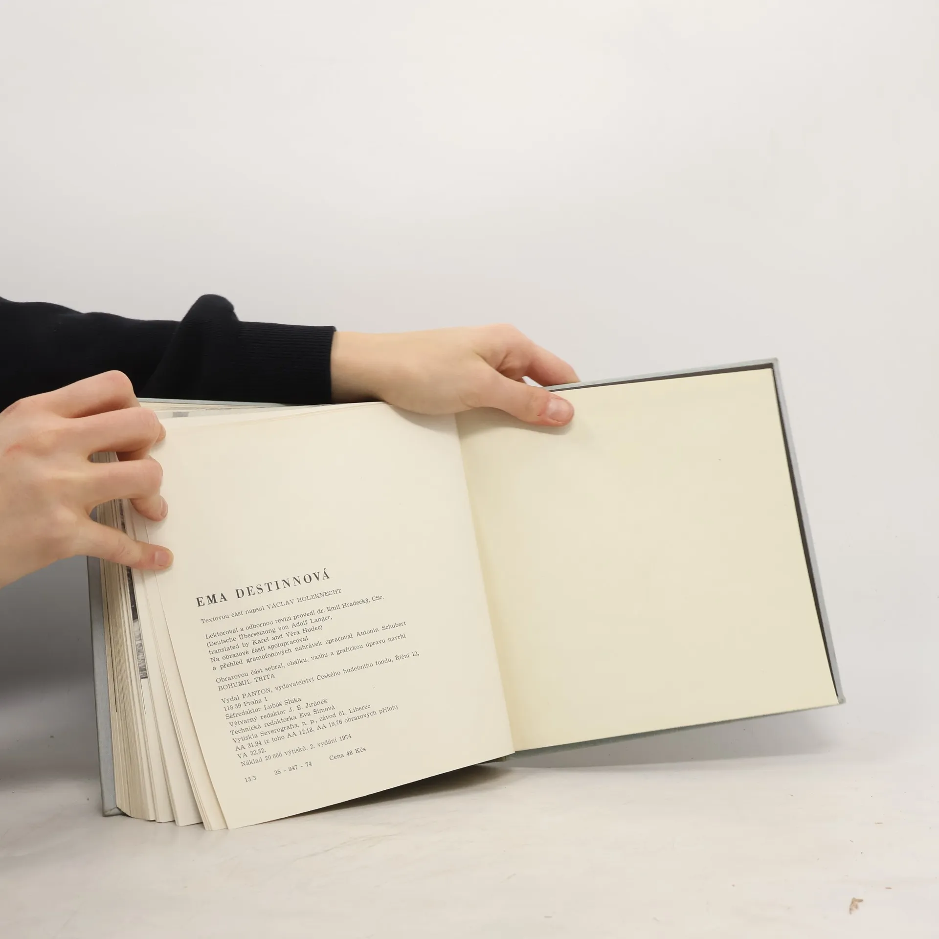Ema Destinnová ve slovech i obrazech Životopis slavné umělkyně se odvíjí od jejího dětství a mládí, zachycuje její první nezdary a pak počátky budoucí kariéry, angažmá v Dvorní opeře v Berlíně, hostování ve Wagnerově divadle, turné po Evropě i Americe, celou její vrcholnou kariéruaž do posledních let jejího života, která prožila v ústraní na svém zámku Stráž. Publikace je bohatě vybavena snímky z jejího života i divadelních rolí.