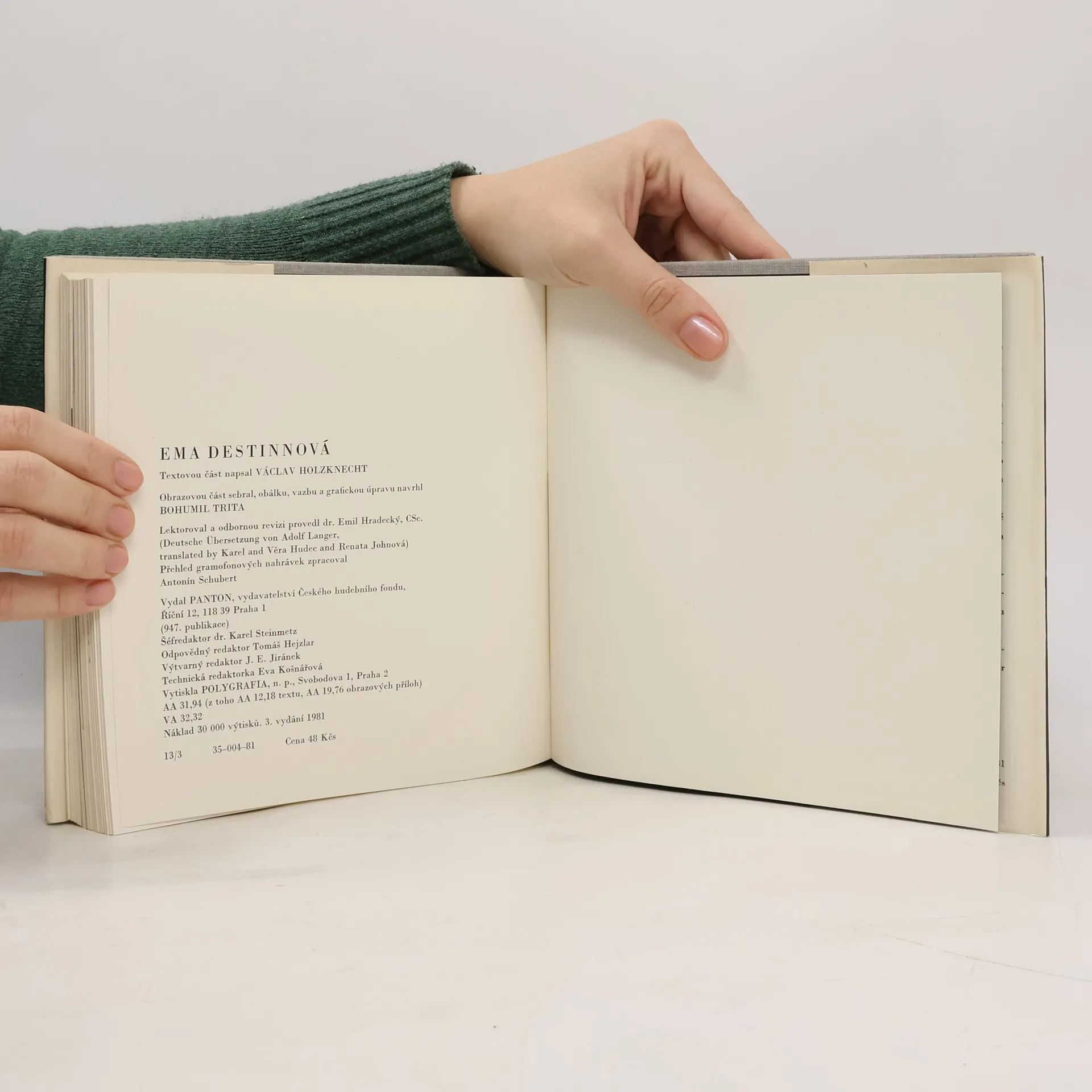 Ema Destinnová ve slovech i obrazech Životopis slavné umělkyně se odvíjí od jejího dětství a mládí, zachycuje její první nezdary a pak počátky budoucí kariéry, angažmá v Dvorní opeře v Berlíně, hostování ve Wagnerově divadle, turné po Evropě i Americe, celou její vrcholnou kariéruaž do posledních let jejího života, která prožila v ústraní na svém zámku Stráž. Publikace je bohatě vybavena snímky z jejího života i divadelních rolí.