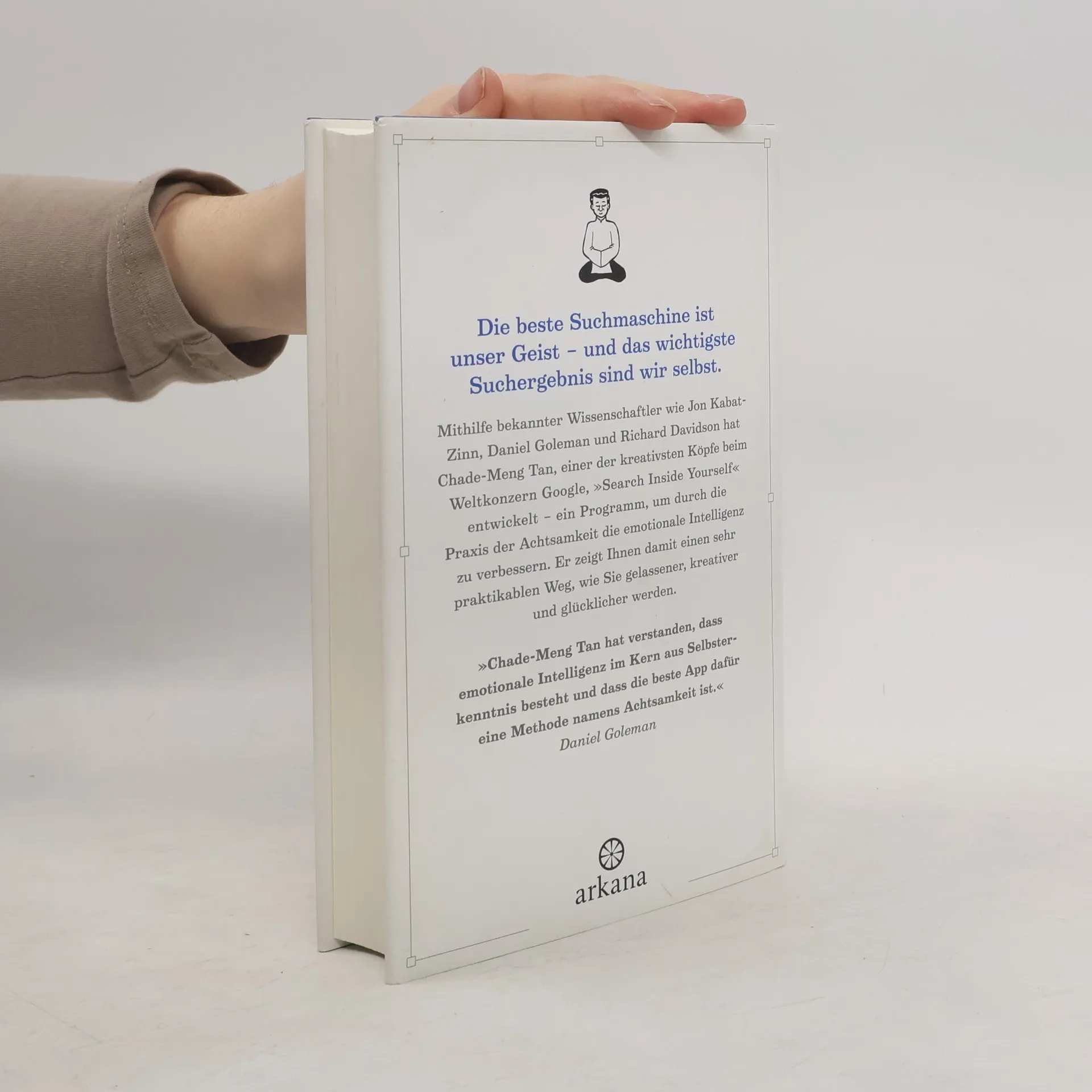 Die beste Suchmaschine ist unser GeistSeit 2007 bietet Google seinen Mitarbeitern ein Programm für persönliches Wachstum an: »Search inside yourself«. Den Anstoß dazu gab Chade-Meng Tan, ein Google-Ingenieur, der diesen Acht-Wochen-Kurs zusammen mit renommierten Wissenschaftlern wie Jon Kabat-Zinn und Daniel Goleman entwickelte. »Search inside yourself« bietet ein Achtsamkeitstraining, um emotionale Intelligenz zu erlernen, mit dem Ziel, zufriedener, gelassener, kreativer und schließlich auch erfolgreicher zu werden. Es umfasst Übungen und Meditationen, um die Konzentration zu verbessern, die Selbstwahrnehmung zu erhöhen und nützliche mentale Gewohnheiten zu entwickeln. Bei Google ist dieses Trainingsprogramm äußerst beliebt und nachgefragt. Chade-Meng Tan macht es nun erstmals öffentlich zugänglich. Mit Leichtigkeit und Witz, und dabei stets wissenschaftlich fundiert (er ist ja Ingenieur!) zeigt er einen etwas anderen, jedoch sehr vielversprechenden Weg zu Kreativität und Lebensglück. Und wenn das bei Google funktioniert – warum nicht auch bei uns?