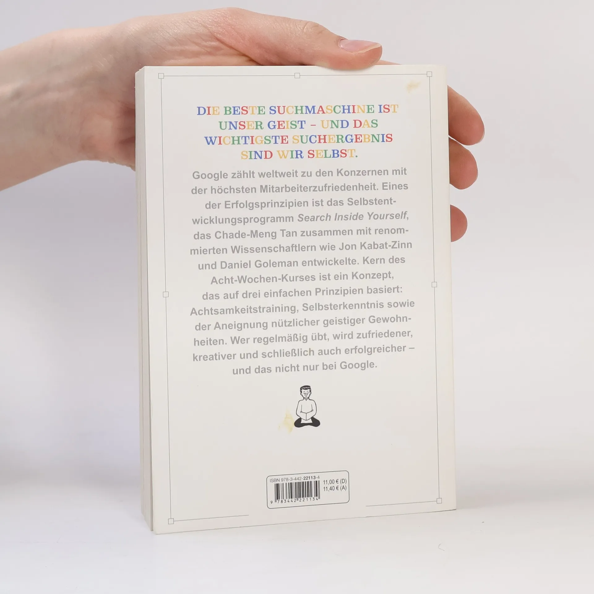 Google zählt weltweit zu den Konzernen mit der höchsten Mitarbeiterzufriedenheit. Eines der Erfolgsprinzipien ist das revolutionäre Selbstentwicklungsprogramm Search Inside Yourself, das Google-Veteran Chade-Meng Tan zusammen mit renommierten Wissenschaftlern wie Jon Kabat-Zinn und Daniel Goleman entwickelte. Kern des Acht-Wochen-Kurses ist ein leicht umsetzbares Achtsamkeitskonzept, das auf drei einfachen Prinzipien basiert: Aufmerksamkeitstraining, Selbsterkenntnis sowie der Aneignung nützlicher geistiger Gewohnheiten. Wer regelmäßig übt, wird im Beruf wie im Privatleben zufriedener, gelassener, kreativer und schließlich auch erfolgreicher – und das nicht nur bei Google.