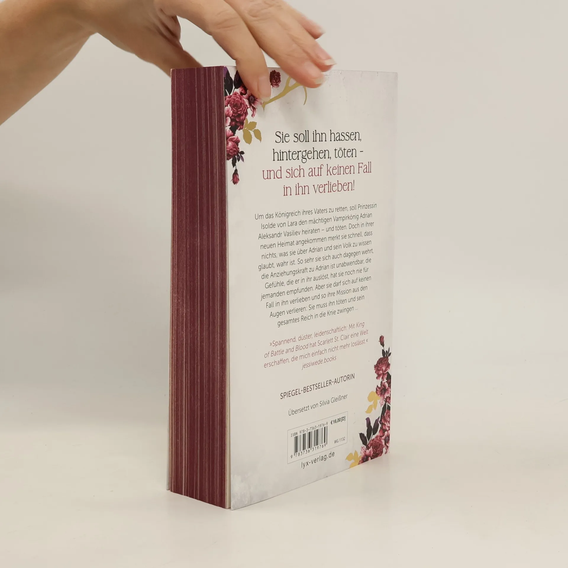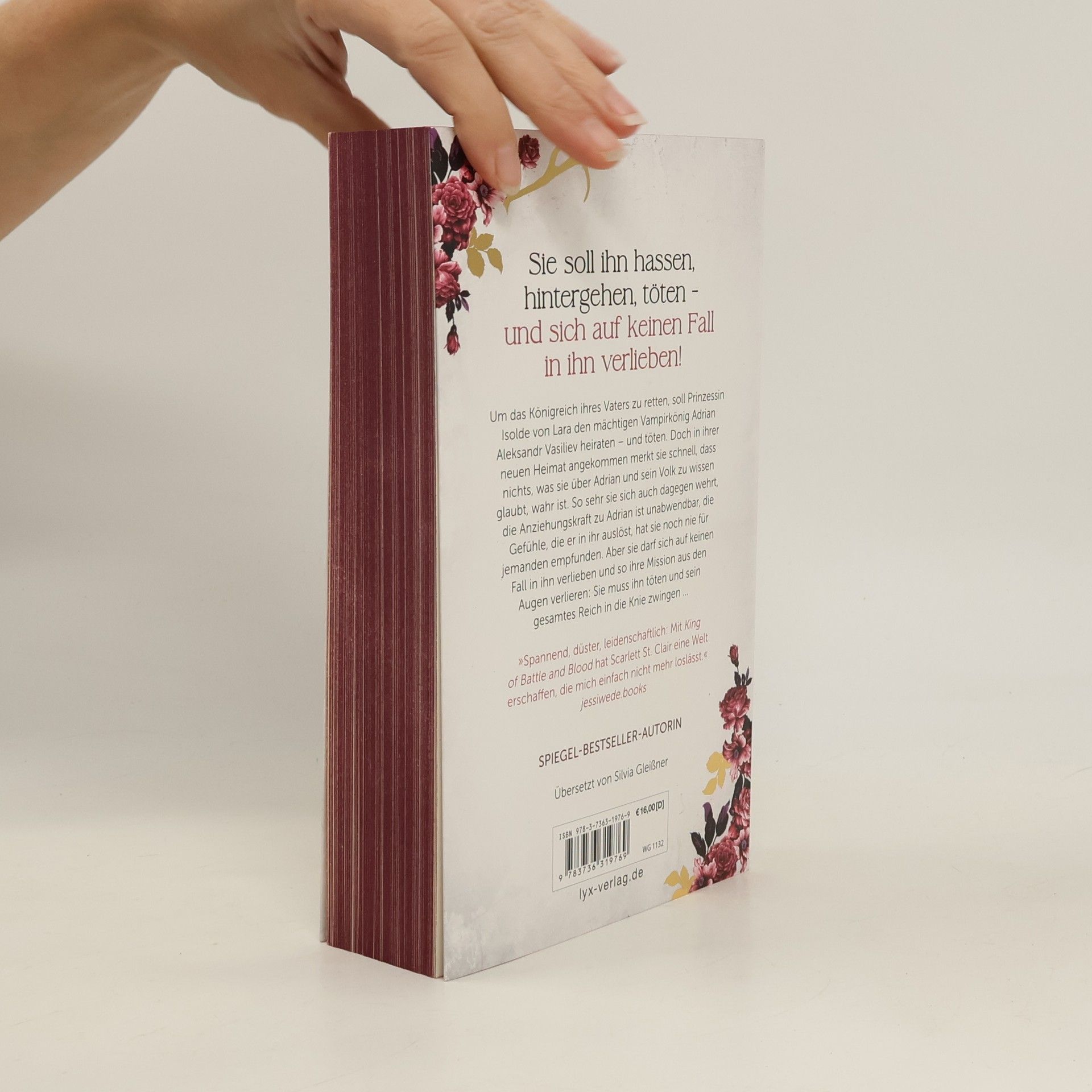 Sie soll ihn hassen, hintergehen, töten - und sich auf keinen Fall in ihn verlieben! Um das Königreich ihres Vaters zu retten, soll Prinzessin Isolde von Lara den mächtigen Vampirkönig Adrian Aleksandr Vasiliev heiraten - und töten. Doch in ihrer neuen Heimat angekommen merkt sie schnell, dass nichts, was sie über Adrian und sein Volk zu wissen glaubt, wahr ist. So sehr sie sich auch dagegen wehrt, die Anziehungskraft zu Adrian ist unabwendbar, die Gefühle, die er in ihr auslöst, hat sie noch nie für jemanden empfunden. Aber sie darf sich auf keinen Fall in ihn verlieben und so ihre Mission aus den Augen verlieren: Sie muss ihn töten und sein gesamtes Reich in die Knie zwingen ... »Spannend, düster, leidenschaftlich: Mit KING OF BATTLE AND BLOOD hat Scarlett St. Clair eine Welt erschaffen, die mich einfach nicht mehr loslässt.« JESSIWEDE. BOOKS Der Auftakt der fesselnden KING-OF-BATTLE-AND-BLOOD-Trilogie von Bestseller-Autorin Scarlett St. Clair Dieses Buch gibt es in zwei Versionen: mit und ohne Farbschnitt. Sobald die Farbschnitt-Ausgabe ausverkauft ist, liefern wir die Ausgabe ohne Farbschnitt aus