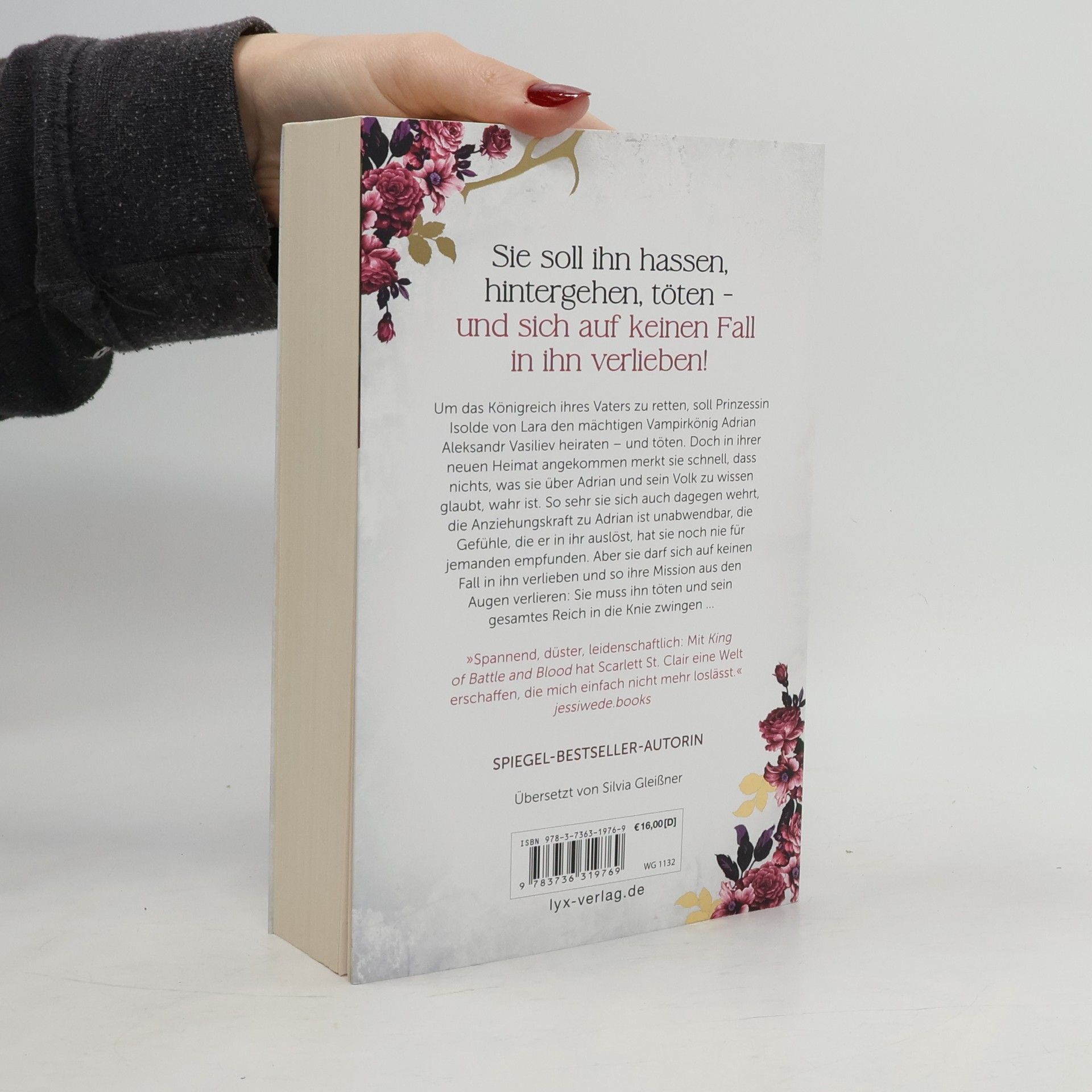 Sie soll ihn hassen, hintergehen, töten - und sich auf keinen Fall in ihn verlieben! Um das Königreich ihres Vaters zu retten, soll Prinzessin Isolde von Lara den mächtigen Vampirkönig Adrian Aleksandr Vasiliev heiraten - und töten. Doch in ihrer neuen Heimat angekommen merkt sie schnell, dass nichts, was sie über Adrian und sein Volk zu wissen glaubt, wahr ist. So sehr sie sich auch dagegen wehrt, die Anziehungskraft zu Adrian ist unabwendbar, die Gefühle, die er in ihr auslöst, hat sie noch nie für jemanden empfunden. Aber sie darf sich auf keinen Fall in ihn verlieben und so ihre Mission aus den Augen verlieren: Sie muss ihn töten und sein gesamtes Reich in die Knie zwingen ... »Spannend, düster, leidenschaftlich: Mit KING OF BATTLE AND BLOOD hat Scarlett St. Clair eine Welt erschaffen, die mich einfach nicht mehr loslässt.« JESSIWEDE. BOOKS Der Auftakt der fesselnden KING-OF-BATTLE-AND-BLOOD-Trilogie von Bestseller-Autorin Scarlett St. Clair Dieses Buch gibt es in zwei Versionen: mit und ohne Farbschnitt. Sobald die Farbschnitt-Ausgabe ausverkauft ist, liefern wir die Ausgabe ohne Farbschnitt aus