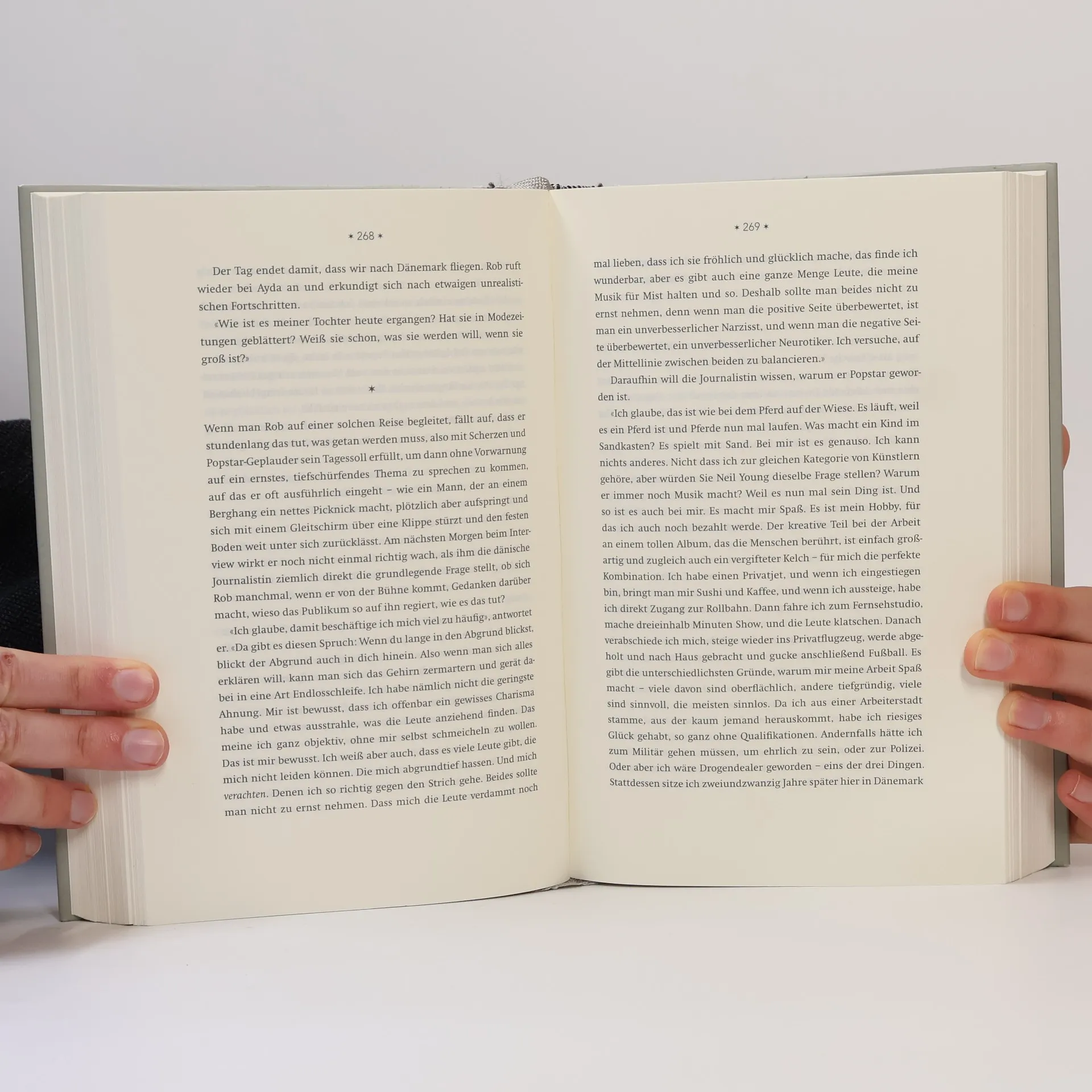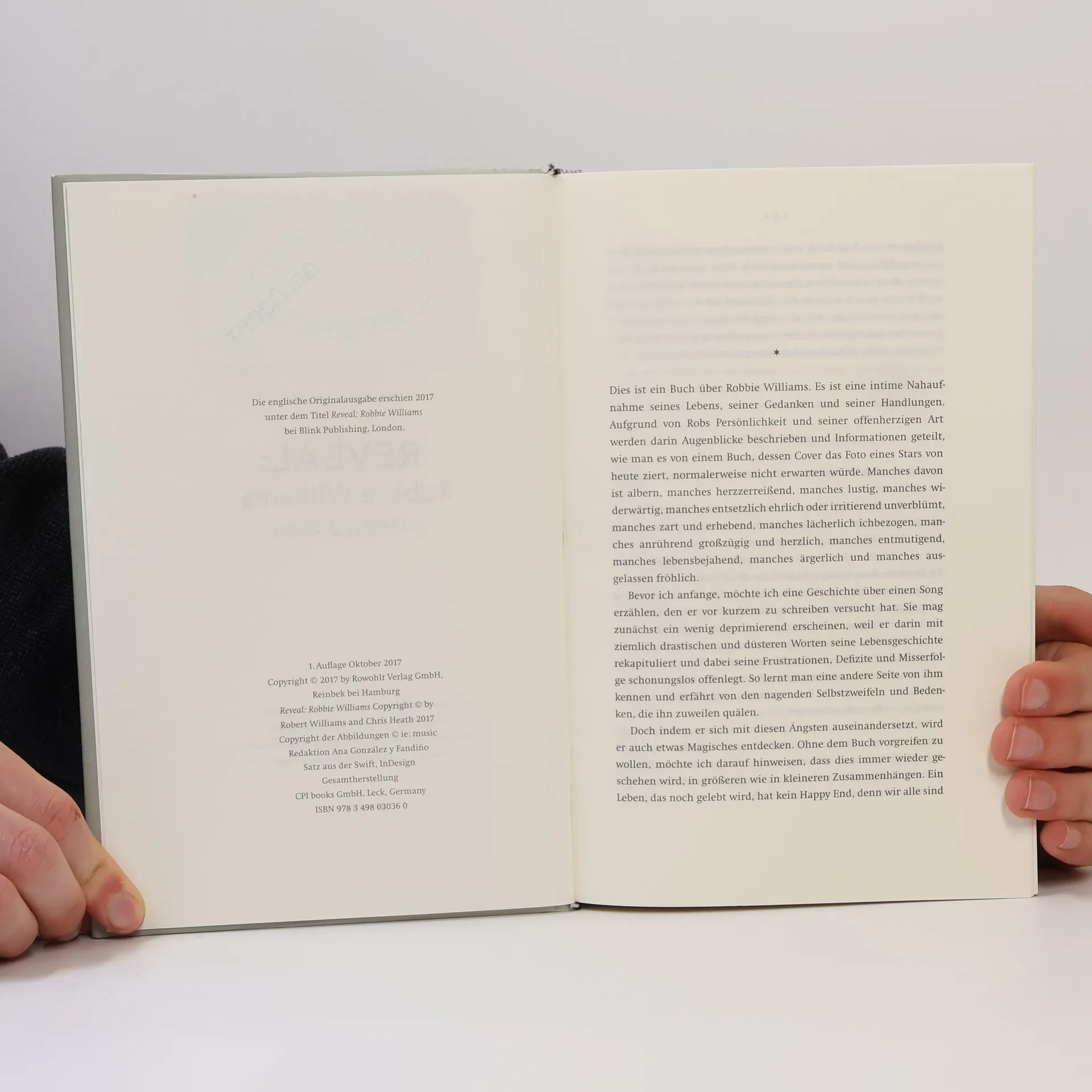 «Am Anfang tut man alles, um ein Star zu werden, und den Rest seiner Karriere verbringt man damit, als Star zu überleben.» Diese Erkenntnis teilt Robbie Williams, der in seinem neuen Buch beschreibt, was nach seinem Aufstieg zum Star geschah. Er kämpfte gegen Depressionen und Alkoholismus, zog sich aus dem Popgeschäft zurück, beobachtete UFOs und suchte die Einsamkeit. In dieser Zeit wurde er Ehemann und zweifacher Vater. Nach einer Versöhnung mit seinem musikalischen Partner Guy Chambers kehrt er mit seinem elften Album zurück in die Öffentlichkeit. Gemeinsam mit dem Musikjournalisten Chris Heath, der ihn über die Jahre begleitete, entstand ein intimer, unzensierter Bericht über die letzten zehn Jahre seines Lebens. Es ist eine Reportage über den Popstar und Privatmann, die die Herausforderungen des Lebens als Star beleuchtet. Robbie ist zurück – Vorhang auf! Dieses Buch ist das Tagebuch eines modernen Entertainers, der versucht, sich selbst neu zu finden, nachdem er aus dem Vorruhestand zurückgekehrt ist. Es ist wahr, lustig, manchmal traurig, gut geschrieben und sehr unterhaltsam. Robbie hofft, dass die Menschen Freude daran haben.