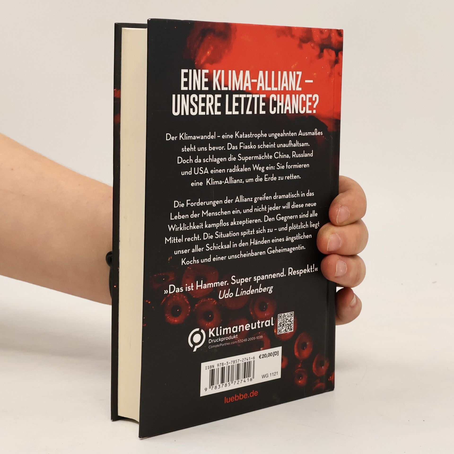 Eine Klima-Allianz - unsere letzte Chance? Der Klimawandel - eine Katastrophe ungeahnten Ausmaßes steht uns bevor. Verändert unsere Erde. Verändert unser aller Leben. Das Fiasko scheint unaufhaltsam. Bis die drei Supermächte China, Russland und die USA einen radikalen Weg einschlagen. Doch wird diese starke Klima-Allianz das Ruder noch herumreißen? Die Maßnahmen der Allianz greifen gravierend in das Leben der Menschen ein, und nicht jeder will diese neue Wirklichkeit kampflos akzeptieren. Alle Mittel sind den Gegnern recht, um ihre ökonomischen und machtpolitischen Interessen zu verteidigen. Die Situation spitzt sich dramatisch zu, und plötzlich liegt das Schicksal der Erde in den Händen eines schüchternen Kochs und einer unscheinbaren Geheimagentin. „Das ist Hammer. Super spannend. Respekt!“ Udo Lindenberg