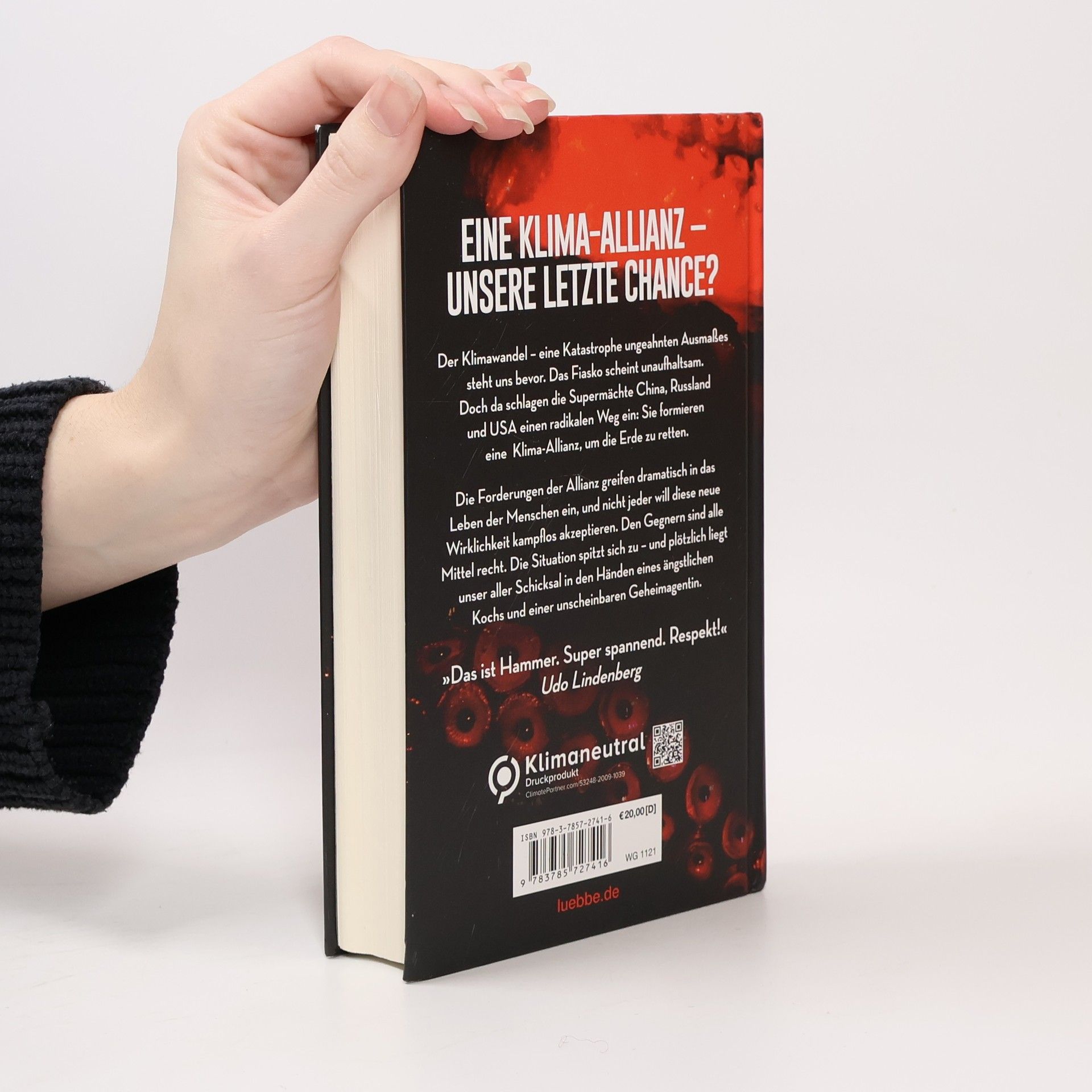 Eine Klima-Allianz - unsere letzte Chance? Der Klimawandel - eine Katastrophe ungeahnten Ausmaßes steht uns bevor. Verändert unsere Erde. Verändert unser aller Leben. Das Fiasko scheint unaufhaltsam. Bis die drei Supermächte China, Russland und die USA einen radikalen Weg einschlagen. Doch wird diese starke Klima-Allianz das Ruder noch herumreißen? Die Maßnahmen der Allianz greifen gravierend in das Leben der Menschen ein, und nicht jeder will diese neue Wirklichkeit kampflos akzeptieren. Alle Mittel sind den Gegnern recht, um ihre ökonomischen und machtpolitischen Interessen zu verteidigen. Die Situation spitzt sich dramatisch zu, und plötzlich liegt das Schicksal der Erde in den Händen eines schüchternen Kochs und einer unscheinbaren Geheimagentin. „Das ist Hammer. Super spannend. Respekt!“ Udo Lindenberg
