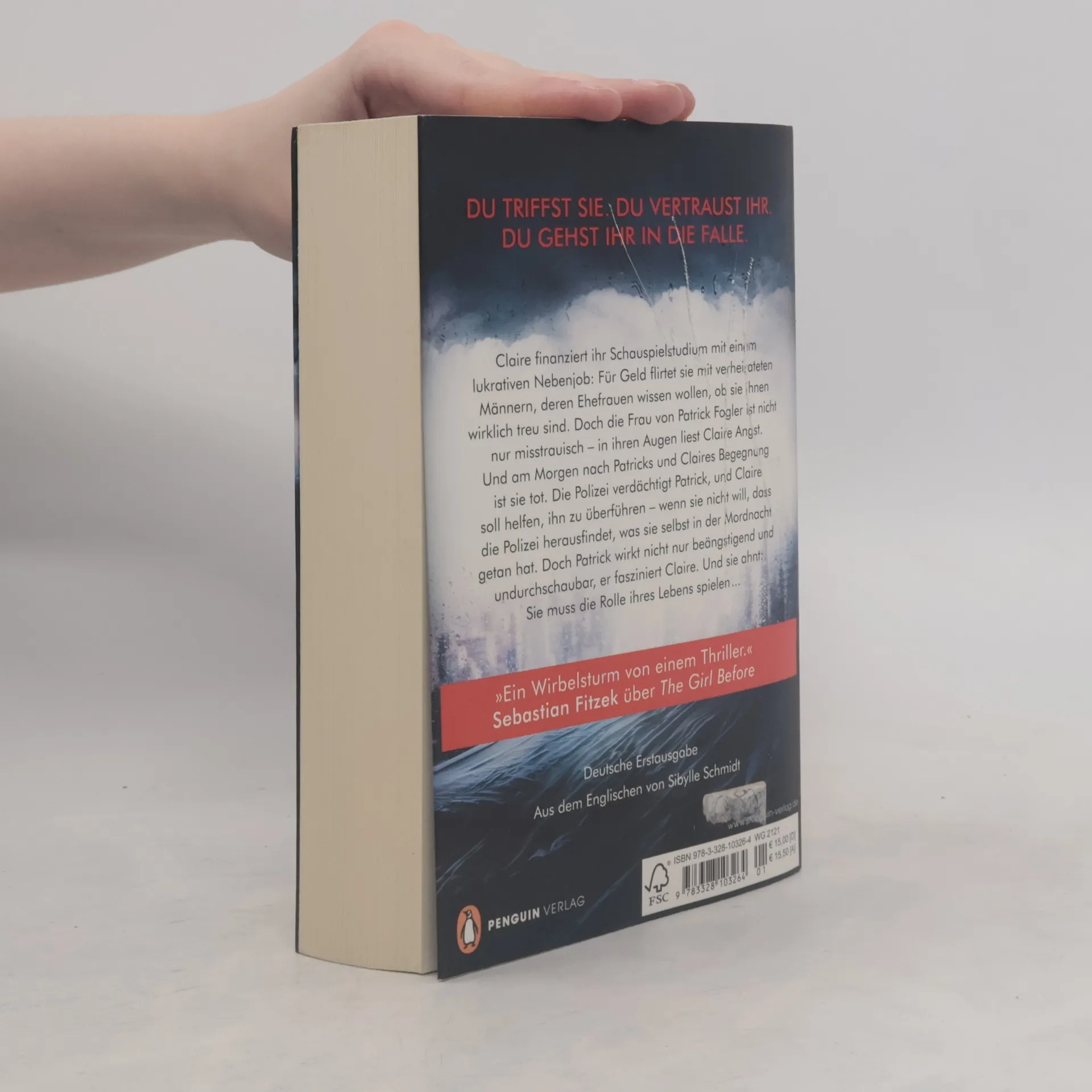 Du triffst sie. Du vertraust ihr. Du gehst ihr in die Falle. Claire finanziert ihr Schauspielstudium mit einem lukrativen Nebenjob: Für Geld flirtet sie mit verheirateten Männern, deren Ehefrauen wissen wollen, ob sie ihnen wirklich treu sind. Doch die Frau von Patrick Fogler ist nicht nur misstrauisch – in ihren Augen liest Claire Angst. Und am Morgen nach Patricks und Claires Begegnung ist sie tot. Die Polizei verdächtigt den Witwer, und Claire soll helfen ihn zu überführen – wenn sie nicht will, dass die Polizei herausfindet, was sie selbst in der Mordnacht getan hat. Doch Patrick wirkt nicht nur beängstigend und undurchschaubar, er fasziniert Claire. Und sie ahnt: Sie muss die Rolle ihres Lebens spielen ...