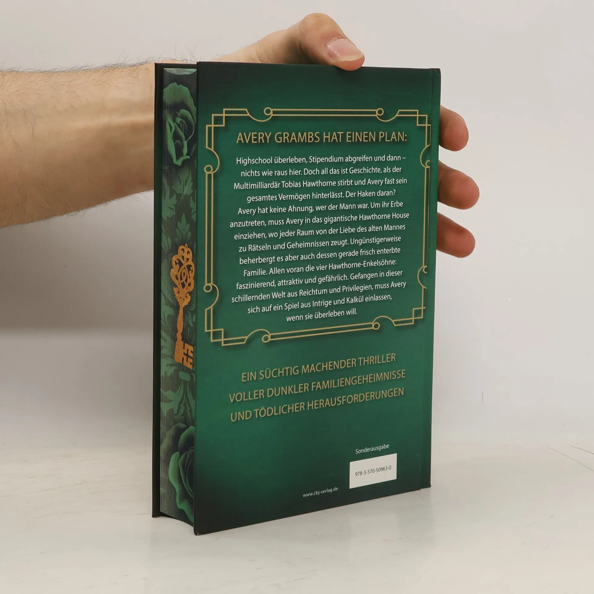 50 Milliarden Dollar – Eine unbekannte Erbin – Vier mörderische Nachkommen. Für alle ab 14 Jahren! Avery Grambs hat einen Plan: Highschool überleben, Stipendium abgreifen und dann – nichts wie raus hier. Doch all das ist Geschichte, als der Multimilliardär Tobias Hawthorne stirbt und Avery fast sein gesamtes Vermögen hinterlässt. Der Haken daran? Avery hat keine Ahnung, wer der Mann war. Um ihr Erbe anzutreten, muss Avery in das gigantische Hawthorne House einziehen, wo jeder Raum von der Liebe des alten Mannes zu Rätseln und Geheimnissen zeugt. Ungünstigerweise beherbergt es aber auch dessen gerade frisch enterbte Familie. Allen voran die vier Hawthorne-Enkelsöhne: faszinierend, attraktiv und gefährlich. Gefangen in dieser schillernden Welt aus Reichtum und Privilegien, muss Avery sich auf ein Spiel aus Intrige und Kalkül einlassen, wenn sie überleben will. Ein süchtig machender Thriller voller dunkler Familiengeheimnisse und tödlicher Herausforderungen. Die Inheritance-Reihe: The Inheritance Games (Band 1) The Inheritance Games - Das Spiel geht weiter (Band 2) The Inheritance Games - Der letzte Schachzug (Band 3)