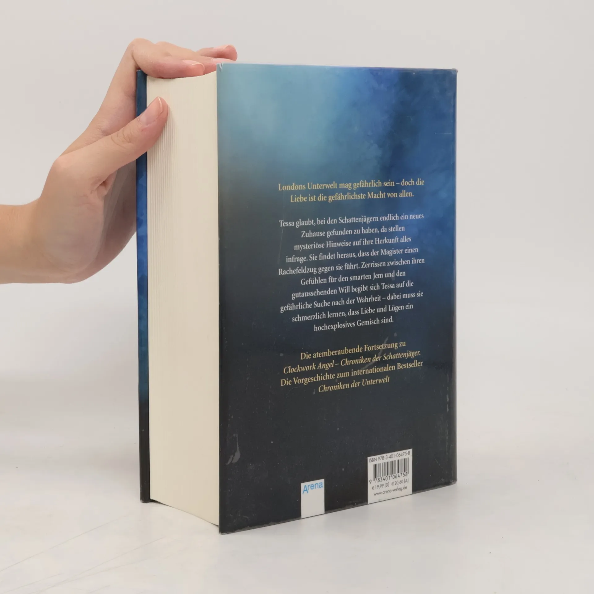 Tessa hat im viktorianischen London bei den Schattenjägern ein neues und sicheres Zuhause gefunden. Doch da wird die Leiterin des Instituts entlassen - ohne ihren Schutz ist Tessa Freiwild für den grausamen Magister. Zusammen mit den beiden jungen Schattenjägern Will und Jem versucht sie, das Rätsel um den Magister zu lösen und findet heraus, dass er einen sie ganz persönlich betreffenden Rachefeldzug führt. Als dann aber auch noch ein Dämon eine Warnung an Will überbringt, wissen sie, dass sie einen Verräter unter sich haben.