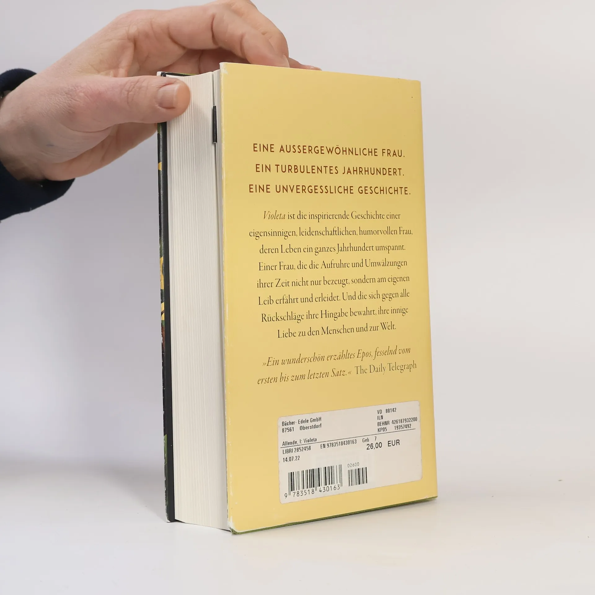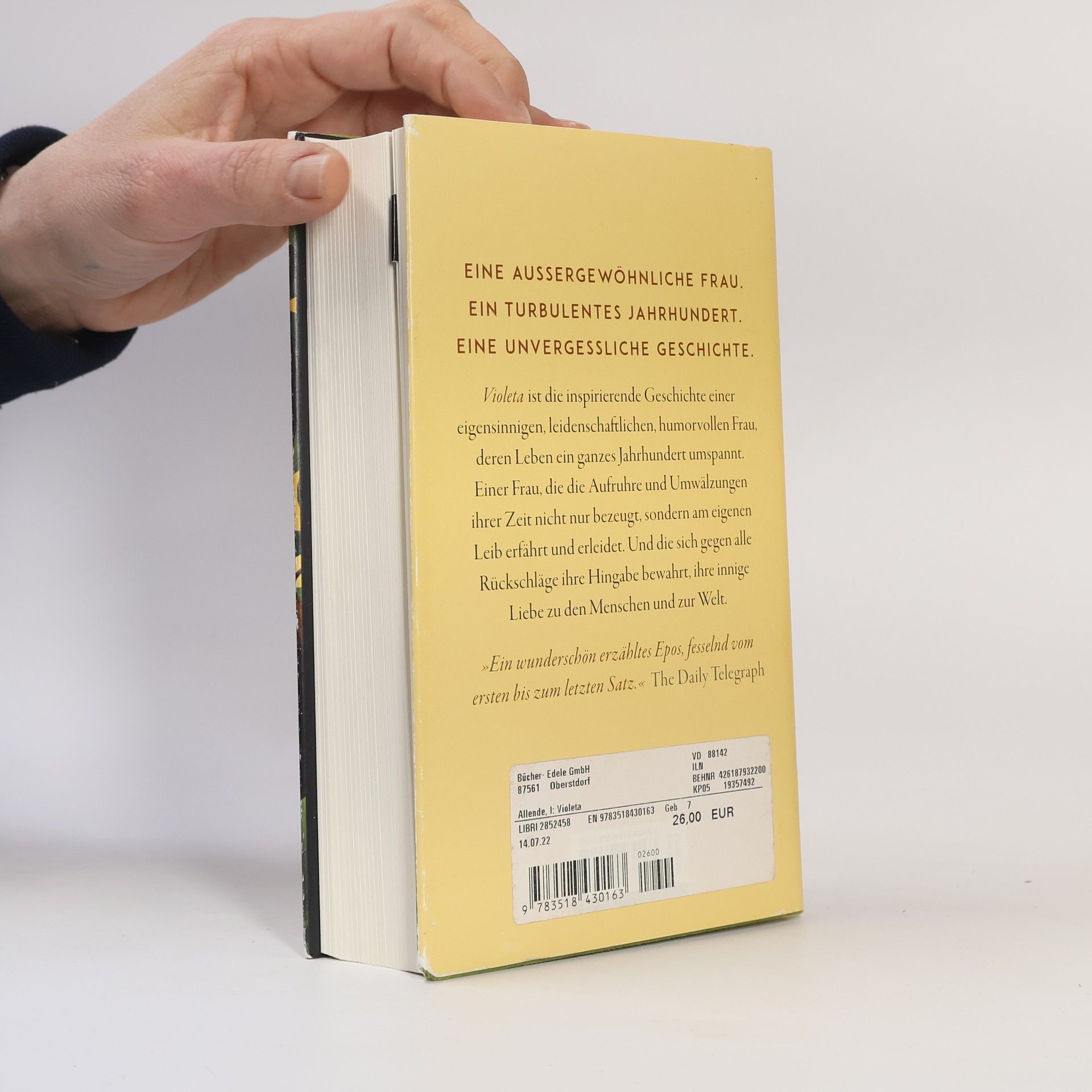 An einem stürmischen Tag des Jahres 1920 kommt sie zur Welt, jüngste Schwester von fünf übermütigen Brüdern, Violeta del Valle. Die Auswirkungen des Krieges sind noch immer spürbar, da verwüstet die Spanische Grippe bereits ihre südamerikanische Heimat. Zum Glück hat der Vater vorgesorgt, die Familie kommt durch, doch schon droht das nächste Unheil, die Weltwirtschaftskrise wird das vornehme Stadtleben, in dem Violeta aufwächst, für immer beenden, die del Valles ziehen sich ins wild-schöne Hinterland zurück. Dort wird Violeta volljährig, und schon steht der erste Verehrer vor der Tür …Violeta erzählt uns selbst ihr Leben, am Ende ihrer Tage schreibt sie ihrem geliebten Enkel einen langen Brief – sie schreibt von ihren halsbrecherischen Affären, den Jahren der Armut, von schrecklichen Verlusten und tiefempfundener Freude, von historischen Vorkommnissen, die ihr Leben geprägt haben: von dem Kampf für die Rechte der Frauen, dem Aufstieg und Fall von Tyrannen und von zwei schrecklichen Pandemien. Violeta ist die inspirierende Geschichte einer eigensinnigen, leidenschaftlichen, humorvollen Frau, deren Leben ein ganzes Jahrhundert umspannt. Einer Frau, die Aufruhr und Umwälzungen ihrer Zeit nicht nur bezeugt, sondern am eigenen Leib erfährt und erleidet. Und die sich gegen alle Rückschläge ihre Hingabe bewahrt, ihre innige Liebe zu den Menschen und zur Welt.