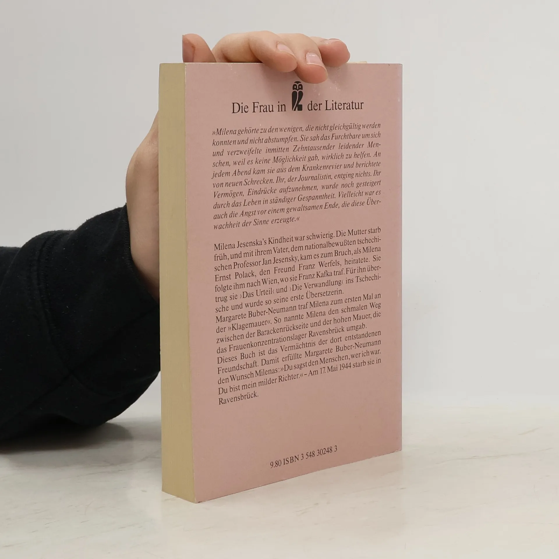 Im Oktober 1940 trafen sich Margarete Buber-Neumann und Milena Jesenská zum ersten Mal an der „Klagemauer“. So nannte Milena den schmalen Weg zwischen der Barackenrückseite und der hohen Mauer, die das Frauenkonzentrationslager Ravensbrück umgab. Das Buch „Milena - Kafkas Freundin“ ist das Vermächtnis der dabei entstandenen Freundschaft. Mit ihm erfüllte Margarete Buber-Neumann den Wunsch Milenas: „Du sagst den Menschen, wer ich war. Du bist mein milder Richter.“ Am 17. Mai 1944 starb Milena in Ravensbrück. Wir erfahren von ihrer Kindheit, ihrer Liebe zur Mutter, die allzu früh starb, dem Vater, Professor Jan Jesensky, mit dem die Tochter in ständigem Konflikt lebte. Zum Bruch mit dem Vater, der ein nationalbewusster Tscheche und Antisemit war, kam es, als Milena Ernst Polak, den Freund Franz Werfels, heiratete und mit ihm nach Wien ging. Doch Glück war dieser Ehe nicht beschieden