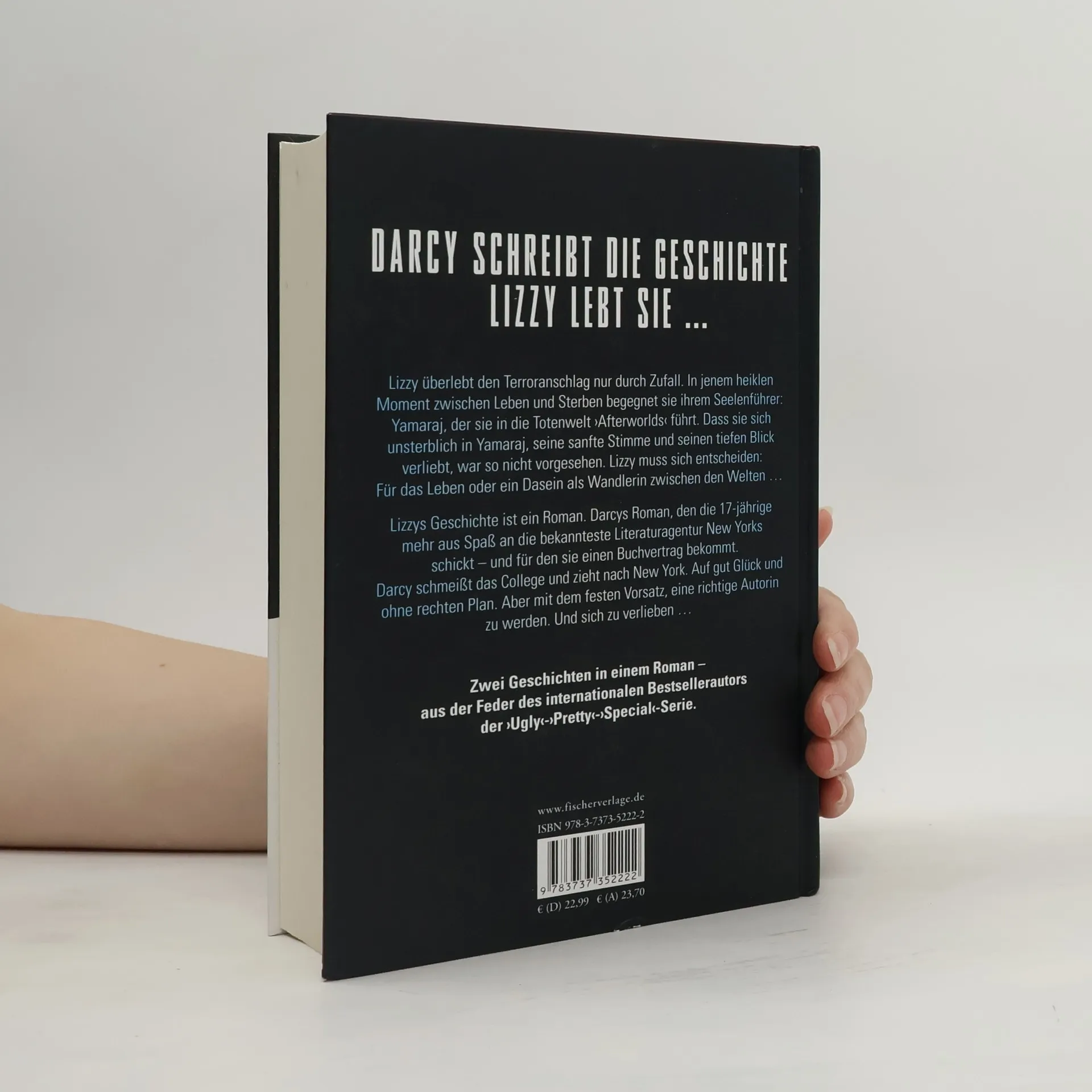 Lizzy überlebt den Terroranschlag auf dem überfüllten Flughafen von Dallas nur durch Zufall. Und begegnet in jenem heiklen Moment zwischen Leben und Sterben ihrem Seelenführer Yamaraj, der Lizzy in die Totenwelt ›Afterworlds‹ führt. Dass sie sich dabei unsterblich in den wunderschönen Man mit der sanfte Stimme und dem tiefen Blick verliebt, war so nicht vorgesehen vom Schicksal. Und Lizzy muss sich entscheiden: Für das Leben oder ein Dasein als Wandlerin zwischen den Welten … Lizzys Geschichte ist ein Roman. Darcys Roman, den die 17-jährige mehr aus Spaß an die bekannteste Literaturagentur New Yorks schickt. Zu ihrer Überraschung bekommt Darcy direkt ein Zwei-Buch-Angebot und einen horrenden Vorschuss. Dieser Erfolg macht sie waghalsig: Statt ihr College-Studium anzutreten, zieht Darcy nach New York. Auf gut Glück und ohne rechten Plan. Aber mit dem festen Vorhaben, eine richtige Autorin zu werden. Und sich zu verlieben …