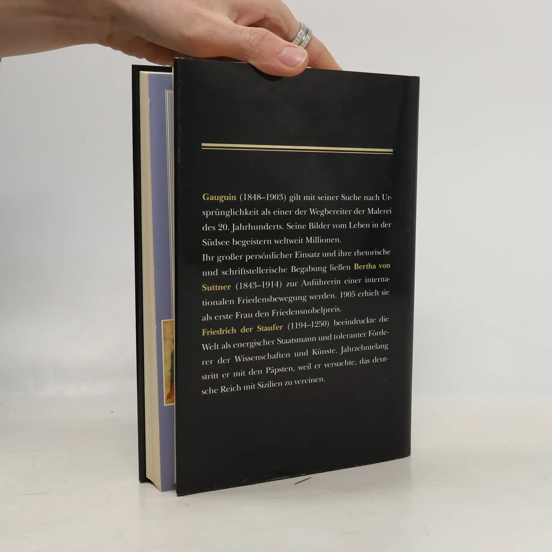 Paul Gauguin, 1848 in Paris geboren, fuhr als junger Mann zunächst zur See, war dann als Börsenmakler und Spekulant erfolgreich. Mit der Malerei beschäftigte er sich zunächst nur als Hobby. Erst als Camille Pissaro sein Talent erkannte und ihn im Sinne des Impressionismus beeinflußte, gab Gauguin seine Stellung auf und ging 1886 in die Bretagne. Es folgten Reisen nach Panama und Martinique, wo er betont flächig zu malen begann und jenen Stil fand, der sein Werk unverwechselbar gemacht hat. Für kurze Zeit folgte er Vincent van Gogh nach Arles, um gemeinsam mit ihm eine neue Malerei zu schaffen. Es kam jedoch zu Spannungen, und er kehrte zurück in die Bretagne, wo die wohl besten Bilder dieser Lebensphase entstanden. Zur Verwirklichung einer lange geplanten Reise in die Südsee verkaufte Gauguin seine Bilder auf einer Auktion. Ab 1891 schuf er auf Tahiti seine heute weltberühmten Bilder, die sich durch betonte Flächenhaftigkeit und expressive Farbigkeit auszeichnen. Wegen wirtschaftlicher Schwierigkeiten mußte er bereits 1893 wieder nach Frankreich reisen, versteigerte wiederum seine Werke und kehrte 1895 für immer in die Südsee zurück, wo er 1903 völlig verarmt starb.