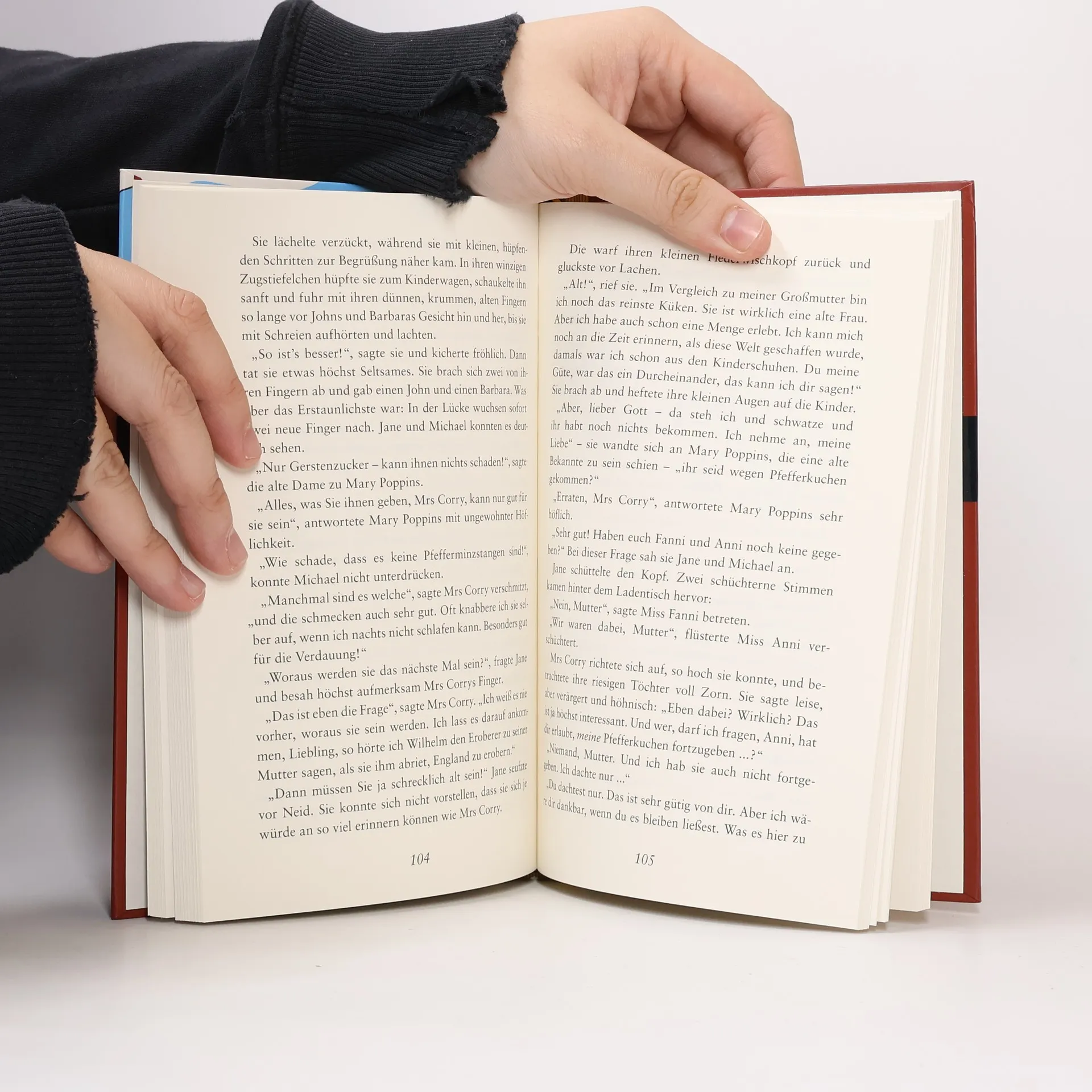 Mit rechten Dingen ist es nicht zugegangen. Jane and Michael haben es genau gesehen: Der Wind hat sie hergeweht und mit einem Plumps vor der Haustür abgesetzt - Mary Poppins, das neue Kindermädchen, eine eitle, mürrische Person, die aber ein großes Herz für Kinder hat. Sie kann mit Tieren reden und besitzt noch viel beachtlichere Vorzüge. Wen wundert es, daß für die Kinder im Kirschbaumweg Nummer 17 eine Zeit voller bunter Abenteur anbricht?