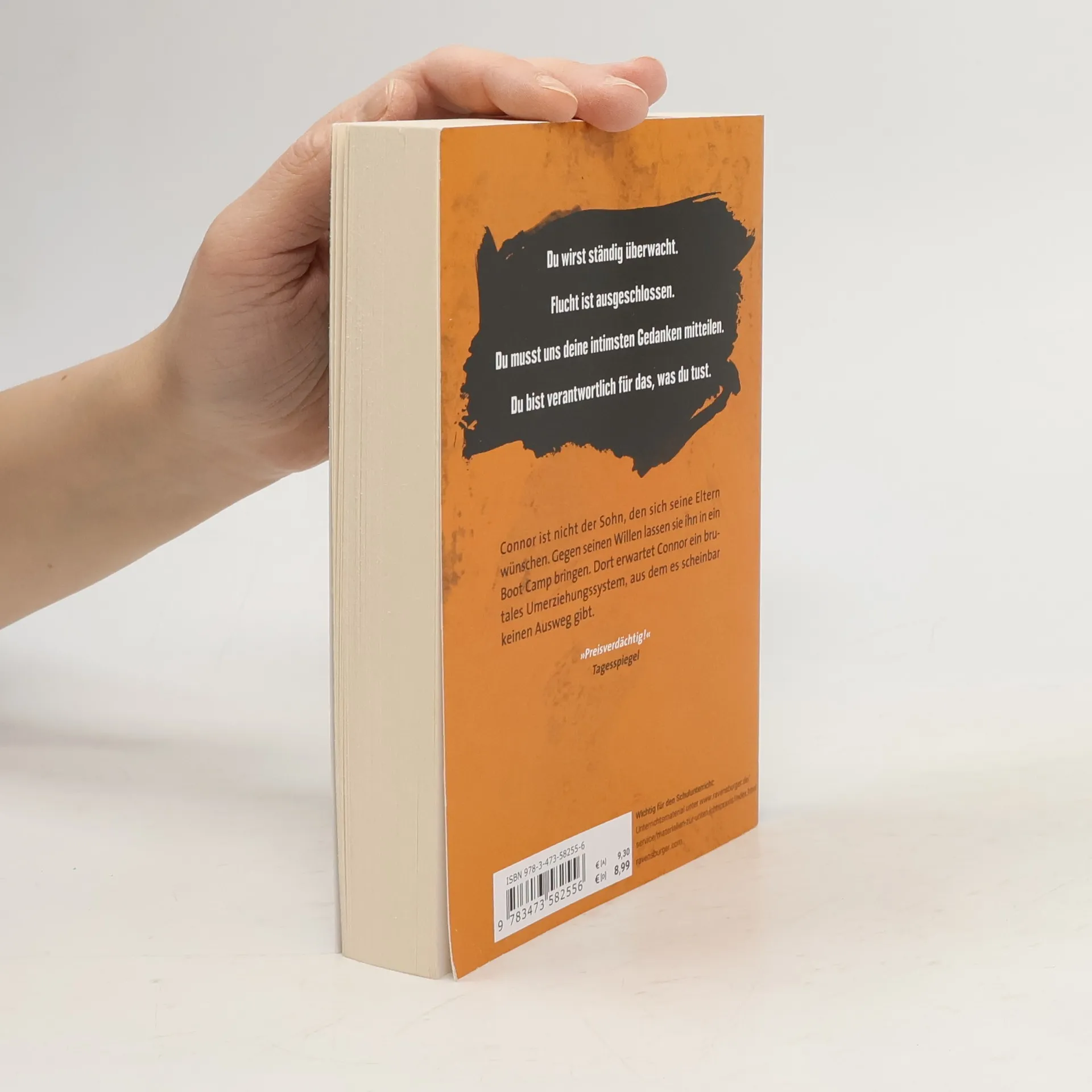Connors Eltern sind sich einig: Das Verhalten ihres Sohnes ist gesellschaftlich inakzeptabel. Gegen seinen Willen wird der Sechzehnjährige in ein Boot Camp gebracht. Dort erwartet ihn ein brutales Umerziehungssystem. Es gibt nur einen Ausweg: Flucht. Wichtig für den Schulunterricht: Seitenzählung unverändert! Mitten in der Nacht wird der sechzehnjährige Connor entführt und in ein Auto gezerrt. Es stellt sich schnell heraus, dass diese Aktion von seinen Eltern in Auftrag gegeben worden ist, um ihn, den unangepassten Jugendlichen, gegen seinen Willen in ein Boot Camp zu verfrachten. Da Connor eine Beziehung zu einer zehn Jahre älteren Frau führt und das nicht den Vorstellungen seiner Eltern entspricht, haben sie ihn für viel Geld in „Lake Harmony“, einem Umerziehungslager für schwer erziehbare Teenager, angemeldet. Dort soll er auf den vermeintlich richtigen Weg geführt werden. Connor erwartet im Boot Camp die Hölle. Körperliche Züchtigung, Isolierstation und verbale Demütigungen gehören zum Alltag. Schließlich findet Connor in Pauly und Sarah zwei Gleichgesinnte und gemeinsam gelingt es ihnen, aus dem Boot Camp zu fliehen. Doch zwei Aufseher sind den Freunden dicht auf den Fersen. Und plötzlich steht Connor vor einer schweren Entscheidung …