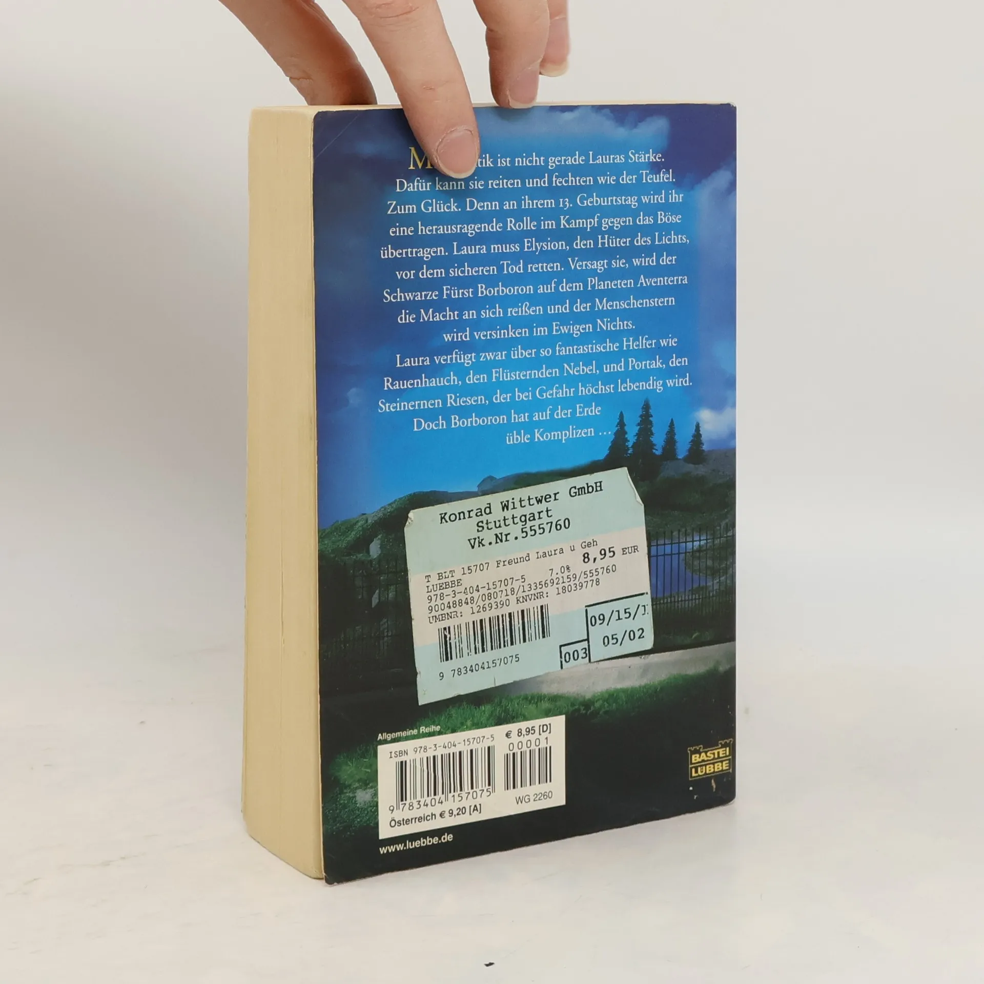 Mathe ist nicht gerade Lauras Stärke. Dafür kann sie reiten und fechten wie der Teufel. Zum Glück. Denn an ihrem 13. Geburtstag wird ihr eine herausragende Rolle im Kampf gegen das Böse übertragen. Laura muss den Hüter des Lichts vor dem sicheren Tod retten. Versagt sie, wird der Schwarze Fürst Borboron auf dem Planeten Aventerra die Macht an sich reißen und der Menschenstern wird versinken im Ewigen Nichts. Laura verfügt zwar über so fantastische Helfer wie den Flüsternden Nebel und den Steinernen Riesen, der bei Gefahr höchst lebendig wird. Doch Borboron hat auf der Erde üble Komplizen ...