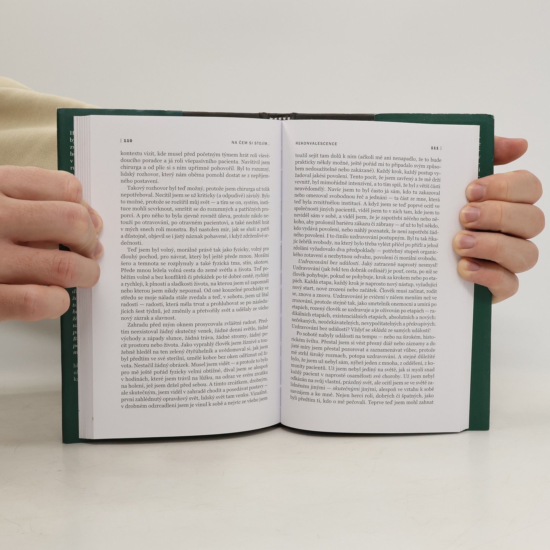 Hlavním podnětem k sepsání této knihy bylo pro autora jeho obyčejné zranění se zvláštními následky, které utrpěl při nehodě v horách. Oliver Sacks se tak ocitl v postavení pacienta, jehož rutinní chirurgická léčba se zkomplikovala a on na vlastní kůži prožil to, co je předmětem jeho celoživotního bádání – neurologické problémy. Sám na sobě zakusil zážitek odcizení části těla... Myšlenky, které ho v jeho nemoci provázely, byly existenciální povahy: Je možné zachovat si celistvé „já“ i v případě, že přijdeme o část těla? Co vlastně znamená toto „já“? „Všechno to bylo ještě pořád ohromně neskutečné. Nebyla to moje noha, co jsem po ní šel, nýbrž mohutná, neohrabaná protéza, bizarní přívěsek, sádrový válec ve tvaru nohy — a navíc válec, který pořád měnil svůj tvar i velikost, jako bych používal jakýsi podivně neobratný a nestálý robotský vynález, naprosto směšnou umělou nohu. Byl to pohyb svého druhu, ale neživočišný, nelidský. Tohle že je chůze? Ptal jsem se sám sebe, a potom se záchvěvem hrůzy: s tímhle že se budu muset smířit pro celý zbytek svého života? To se mi pocit opravdové chůze už nikdy nevrátí? Už nikdy nebudu umět přirozeně, spontánně a svobodně chodit? Budu už odteďka nucen myslet na každý pohyb? Musí být všecko tak složité? Nemůže to být prosté?“ Kniha s upřímností a zápalem přibližuje pocit hrůzy, ale i zázrak, který je ukryt pod povrchem zdraví a který člověka může zcela proměnit.