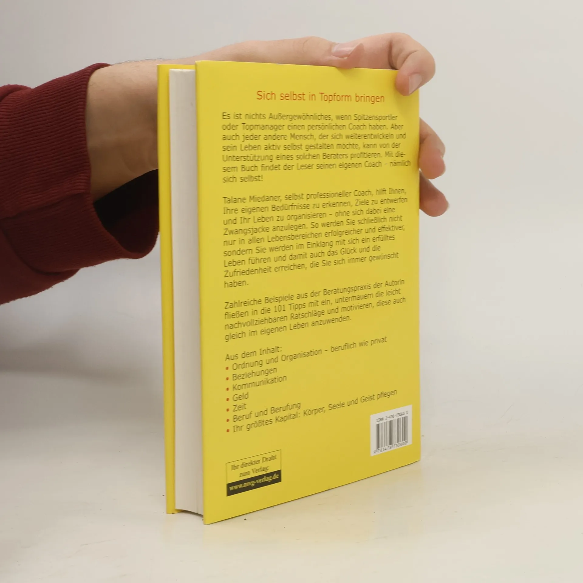 Wenn Sie arbeiten, ohne Land zu sehen, wenn Sie auch im Privatleben das Gefühl haben, dass der Tag 36 Stunden haben müsste und wenn Sie dauernd unzufrieden sind, weil Sie nicht zu den Dingen kommen, die Sie eigentlich tun möchten, - dann brauchen Sie einen Coach! Spitzensportler haben einen, Topmanager auch und wenn Sie clever sind, suchen Sie sich ebenfalls einen guten Berater - am besten sich selbst! Die professionelle Trainerin Talane Miedaner hilft Ihnen mit 101 praktisch orientierten Tipps Ihre eigenen Bedürfnisse zu erkennen, Ziele zu entwerfen und Ihr Leben zu organisieren. So werden Sie schließlich nicht nur im Umgang mit Geld und Zeit, in der Kommunikation und in zwischenmenschlichen Beziehungen, im Berufs- und Privatleben erfolgreicher und effektiver, sondern Sie lernen auch im Einklang mit sich ein erfülltes Leben zu führen und die Dinge zu erreichen, die Ihnen wichtig sind.