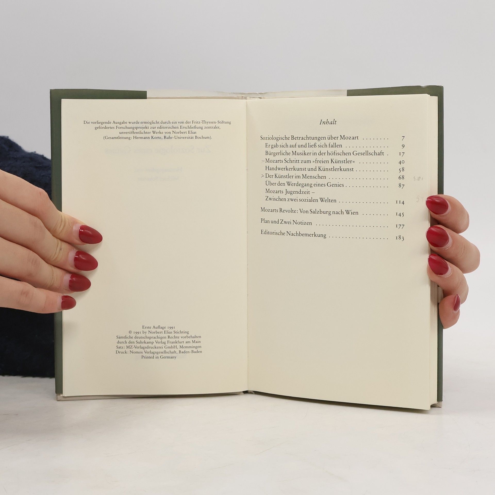 Anläßlich des Vorabdrucks dieser »Soziologie eines Genies« hieß es in der Frankfurter Allgemeinen Zeitung : »... ein überaus lesbares Buch, in dem Elias mit erzählerischer Anschaulichkeit Antworten gibt auf Fragen, wie ›das Genie Mozart‹ zustande kommen konnte. Er erhellt die inneren Antriebe und die äußeren Einflüsse: die Beziehung zum Vater, das nie gestillte Liebesbedürfnis, das Ringen um Anerkennung und die Konflikte eines bürgerlichen Künstlers in einer höfischen Gesellschaft, der sich dem Verhaltenskanon und den Schaffenszwängen eines angestellten Hofmusikers nicht unterwerfen will. Vor allem anhand der Jahre um 1781 zeigt Elias die sozialen Konflikte eines Genies in einer Gesellschaft, die den Geniebegriff noch nicht kannte.«