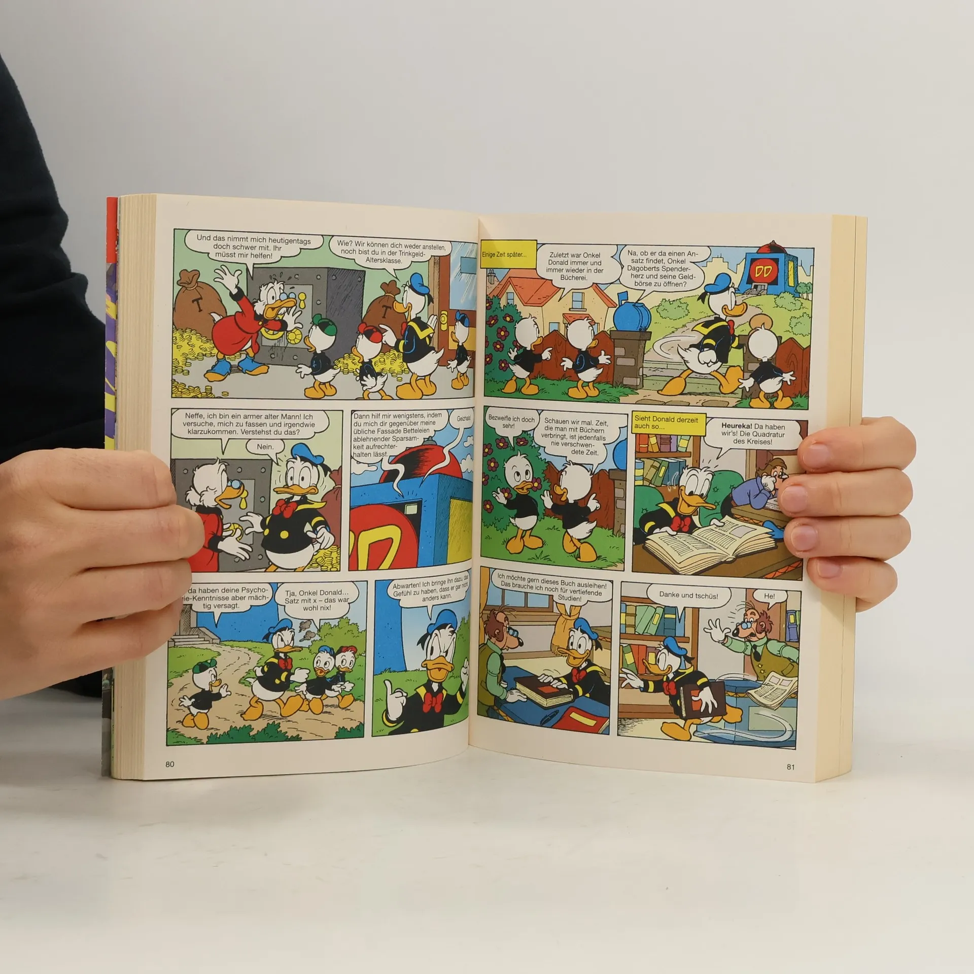 The German publication order and cover order differ from the Italian originals. This is why the numberings and covers do not match. Contains the following stories: - Drachengold - Der Ritter ohne Furcht und Adel - Der Geist aus der Kanne - Ritterliche Raserei Im Königreich Drachenland ist König Dagobertur auf der Suche nach neuen Schätzen. Magister Primus erzählt ihm eine Legende von drei Drachen, die gemeinsam einen Schatz besitzen. Drei Schlüssel gehören dazu, die alle an unterschiedlichen Orten versteckt sind. Kann Dagobertur diese finden? Er schickt seine Ritter los, die den Spuren der Drachen folgen sollen, um die Schlüssel zu finden. So machen sich Donaldus, der Sturzreiche Franzerich der Wohlbeleibte, Gustavus der Glückreiche sowie Dusselbart der Zögerliche auf zur Insel des Verderbens und in die Wüste des Hungers. Fragt sich nur, was man mit den Schlüsseln macht, wenn man sie endlich in den Händen hält.