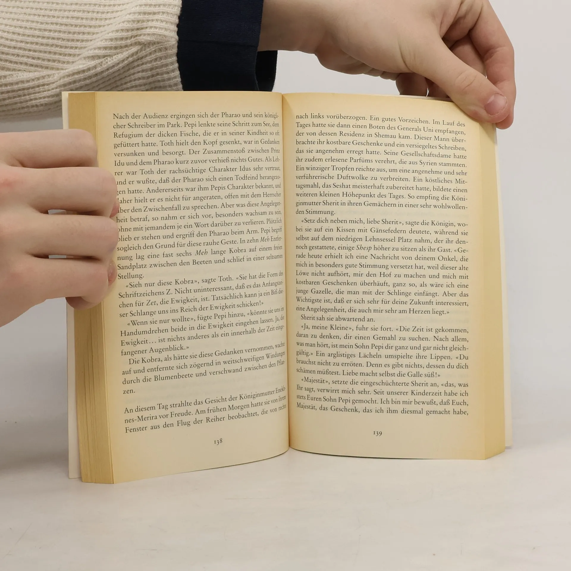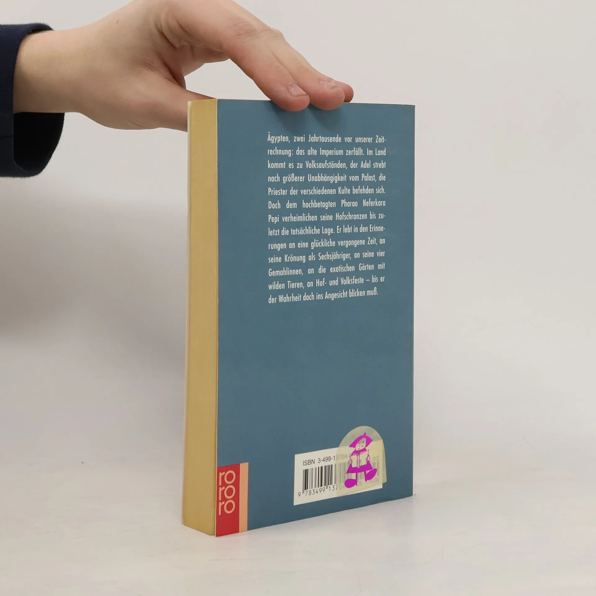 Ägypten, zwei Jahrtausende vor unserer Zeitrechnung: das alte Imperium zerfällt. Im Land kommt es zu Volksaufständen, der Adel strebt nach größerer Unabhängigkeit vom Palast, die Priester der verschiedenen Kulte befehden sich. Doch dem hochbetagten Pharao Neferkara Pepi verheimlichen seine Hofschranzen bis zuletzt die tatsächliche Lage. Er lebt in den Erinnerungen an eine glückliche vergangene Zeit, an seine Krönung als Sechsjähriger, an seine vier Gemahlinnen, an die exotischen Gärten mit wilden Tieren, an Hof- und Volksfeste - bis er der Wahrheit doch ins Angesicht blicken muß.