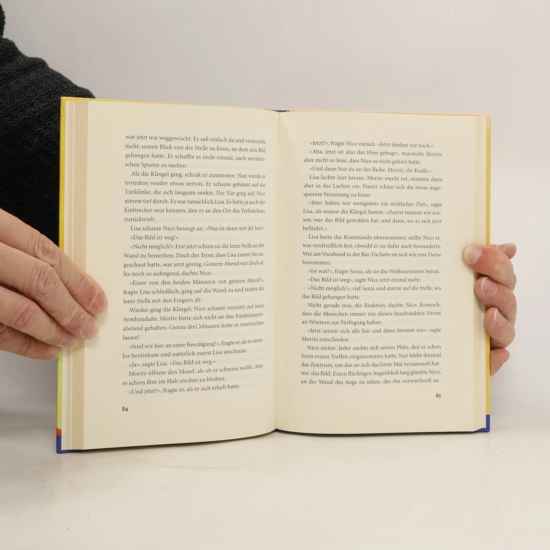 Von seinem Vater, der mit alten Bildern handelt, hat Nico ein Gemälde geschenkt bekommen, das plötzlich lebendig zu werden scheint: Fortwährend starrt ihn ein Auge an! Die Sensation macht schnell die Runde, und das Bild wird gestohlen. Nico und sein Freund Moritz versuchen, seinem Geheimnis auf die Spur zu kommen. Ein vielschichtiger, spannender Kinderkrimi - Peter Zeindler zeigt, dass er nicht nur Erwachsene fesseln kann.