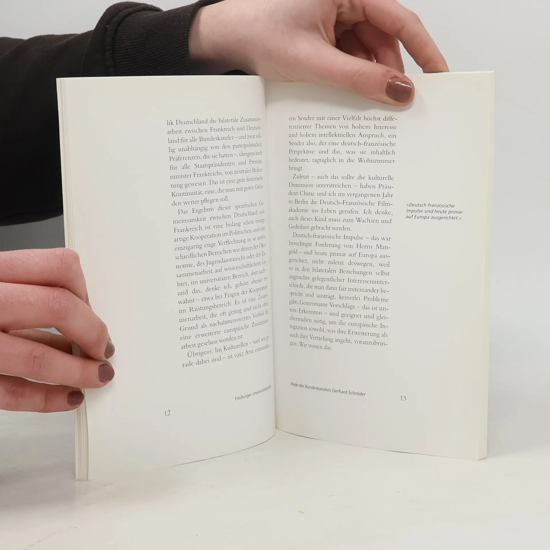 Rede von Bundeskanzler Gerhard Schröder anläßlich der Feier des zehnjährigen Bestehens des Fördervereins des Frankreich-Zentrums am 12. April 2002 in der Albert-Ludwigs-Universität Freiburg.