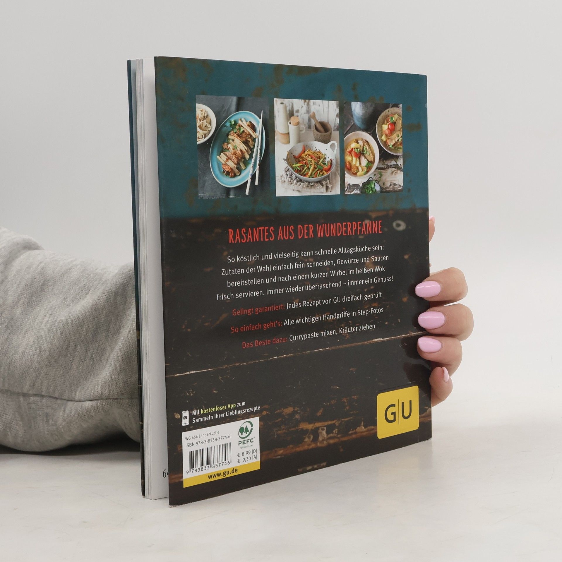 Er hat unsere Küchen im Sturm erobert: der Wok, die Wunderpfanne aus Asien. Warum das so ist? Keine Frage, er ist perfekt für die schnelle Alltagsküche! Denn sind die Zutaten erst einmal klein geschnitten, dauert es nur noch wenige Minuten und das Essen steht auf dem Tisch. Pfannenrühren im Wok ist der Klassiker, aber auch fürs Frittieren und Dämpfen ist der Allrounder bestens geeignet. Wie gut, das zeigen die Rezepte in diesem Buch, die jedes Talent der Wirbelpfanne ausreizen. Das Beste: Ob Gemüsecurry mit Kokosmilch, scharfes Huhn mit Cashews oder gebratener Fisch mit Ingwerstreifen - alle Zutaten dafür gibt es im Supermarkt um die Ecke. Und wenn die Reise mal nicht nach Asien gehen soll, sorgen mediterrane Wok-Rezepte für Überraschung auf dem Teller. Den zusätzlichen Kick geben Saucen und Marinaden, die man easy selber machen kann. Also: Nichts wie ran an den Wok!