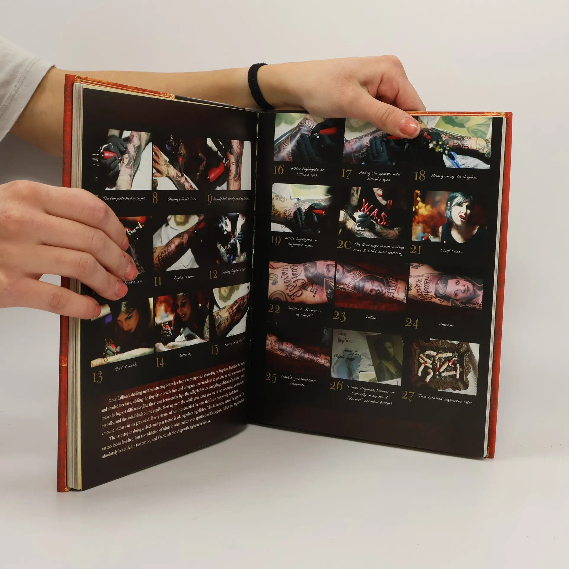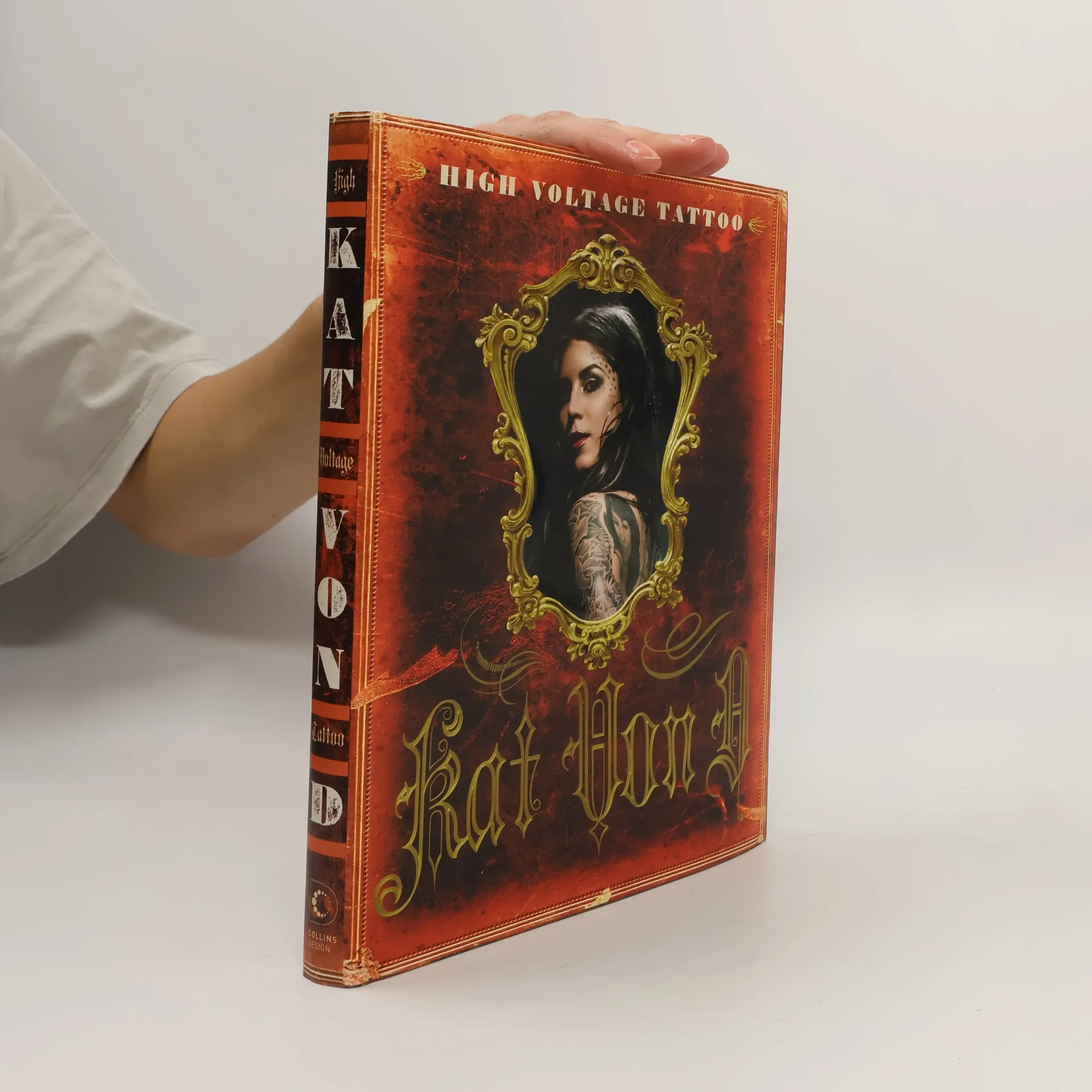 High Voltage Tattoo offers a graphic insight into contemporary tattoo culture through the lens of Kat Von D, a prominent artist and star of L.A. Ink. The book's design resembles a handmade Gothic journal, featuring a red padded cover and ornate typography, inviting readers into the world of tattooing from an insider's perspective. It chronicles Kat's artistic journey, highlighting her early influences and showcasing her recent work, inspirations, and personal tattoos. The exploration of tattoo culture includes detailed discussions on the tattooing process, tools, and the creation of intricate tattoos. With a foreword by Nikki Sixx of Mötley Crüe, the book presents stories and images of various personalities, from celebrities like Kerry King and Margaret Cho to everyday individuals. It features profiles of selected artists worldwide and interviews with people who have unique tattoos and compelling stories. Numerous portfolios illustrate a variety of subjects, including Kat's renowned black and gray portrait work and popular themes like roses and biblical imagery. A standout ten-page spread showcases Kat in a yellow bikini, highlighting her personal tattoos across her body, including her hands and head.