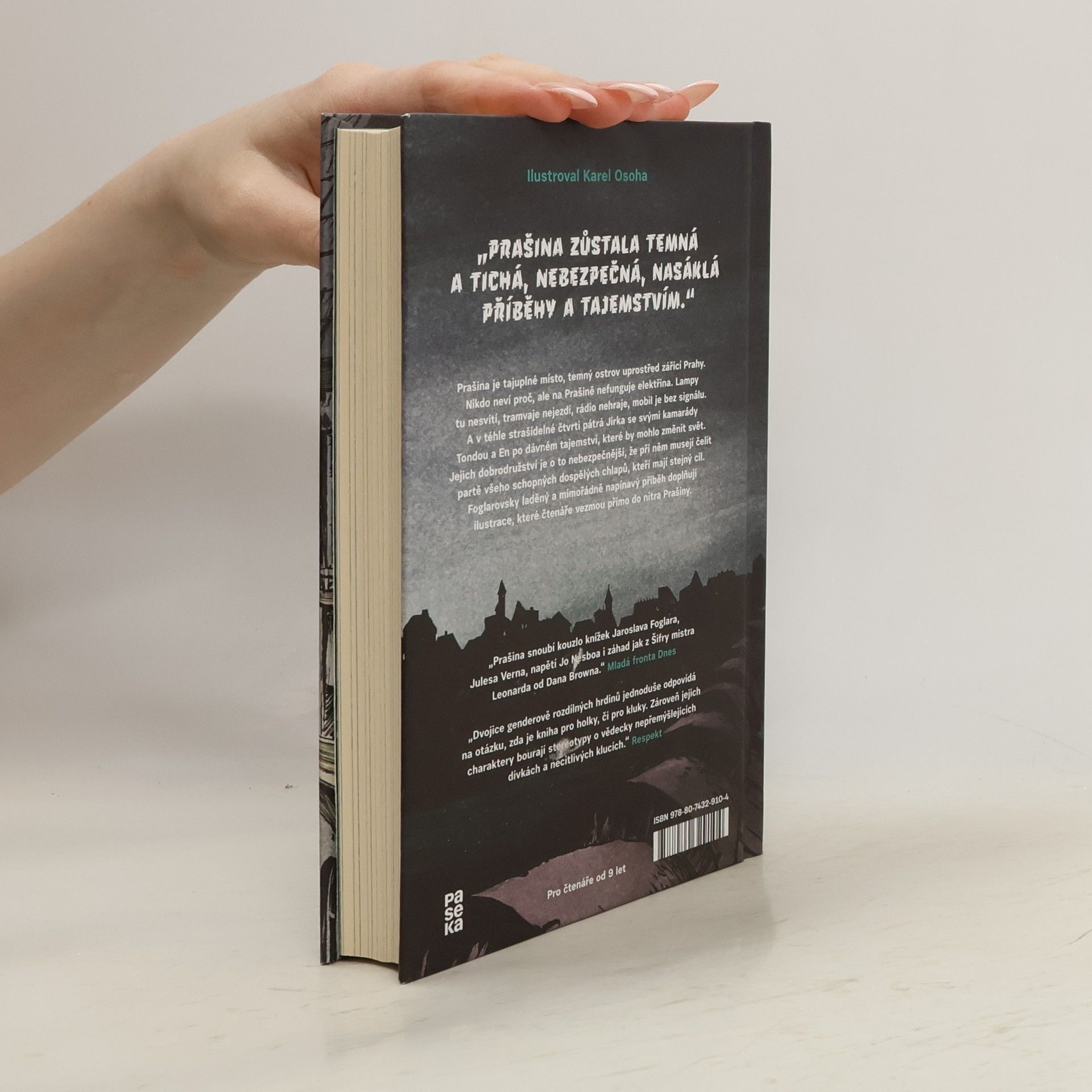 Prašina je tajuplné místo, temný ostrov uprostřed zářící Prahy. Nikdo neví proč, ale na Prašině nefunguje elektřina. Lampy tu nesvítí, tramvaje nejezdí, rádio nehraje, mobil je bez signálu. A v téhle strašidelné čtvrti pátrá Jirka se svými kamarády Tondou a En po dávném tajemství, které by mohlo změnit svět. Jejich dobrodružství je o to nebezpečnější, že při něm musejí čelit partě všeho schopných dospělých chlapů, kteří mají stejný cíl. Foglarovsky laděný a mimořádně napínavý příběh doplňují ilustrace, které čtenáře vezmou přímo do nitra Prašiny.