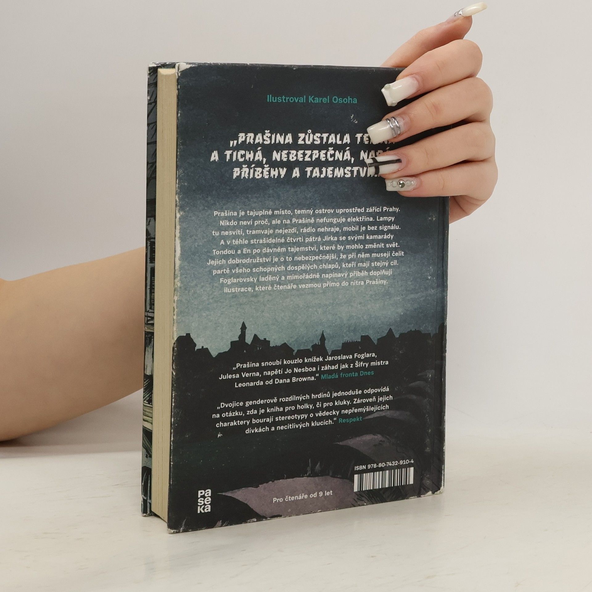 Prašina je tajuplné místo, temný ostrov uprostřed zářící Prahy. Nikdo neví proč, ale na Prašině nefunguje elektřina. Lampy tu nesvítí, tramvaje nejezdí, rádio nehraje, mobil je bez signálu. A v téhle strašidelné čtvrti pátrá Jirka se svými kamarády Tondou a En po dávném tajemství, které by mohlo změnit svět. Jejich dobrodružství je o to nebezpečnější, že při něm musejí čelit partě všeho schopných dospělých chlapů, kteří mají stejný cíl. Foglarovsky laděný a mimořádně napínavý příběh doplňují ilustrace, které čtenáře vezmou přímo do nitra Prašiny.