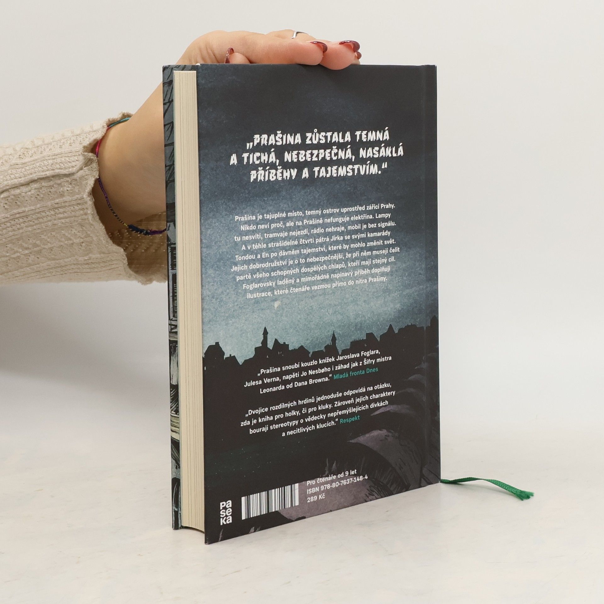 Prašina je tajuplné místo, temný ostrov uprostřed zářící Prahy. Nikdo neví proč, ale na Prašině nefunguje elektřina. Lampy tu nesvítí, tramvaje nejezdí, rádio nehraje, mobil je bez signálu. A v téhle strašidelné čtvrti pátrá Jirka se svými kamarády Tondou a En po dávném tajemství, které by mohlo změnit svět. Jejich dobrodružství je o to nebezpečnější, že při něm musejí čelit partě všeho schopných dospělých chlapů, kteří mají stejný cíl. Foglarovsky laděný a mimořádně napínavý příběh doplňují ilustrace, které čtenáře vezmou přímo do nitra Prašiny.