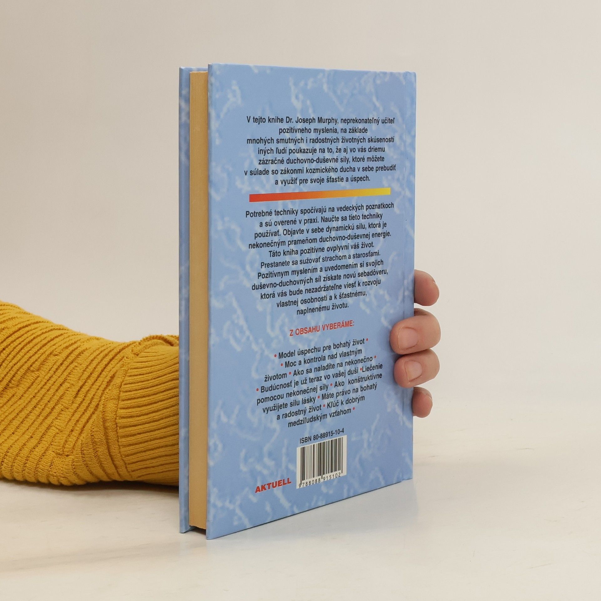 V tejto knihe Dr. Joseph Murphy, neprekonateľný učiteľ pozitívneho myslenia, na základe mnohých smutných i radostných životných skúseností iných ľudí poukazuje na to, že aj vo vás driemu zázračné duchovno-duševné sily, ktoré môžete v súlade so zákonmi kozmického ducha v sebe prebudiťa využiť pre svoje šťastie a úspech.