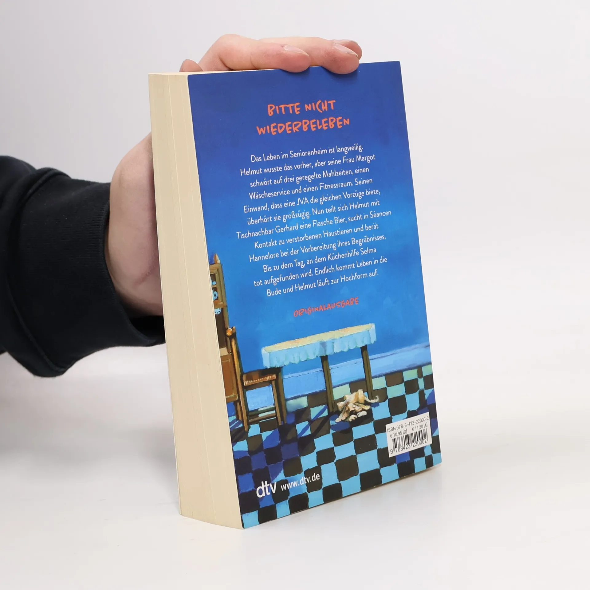 Cosy Crime im Altenheim Das Leben im Seniorenheim ist langweilig. Helmut wusste das vorher, aber seine Frau Margot schwört im Alter auf drei geregelte Mahlzeiten, einen Wäscheservice und einen Fitnessraum. Seinen Einwand, dass eine JVA die gleichen Vorzüge bietet, überhört sie großzügig. Nun teilt sich Helmut mit Gerhard eine Flasche Bier, sucht in Séancen Kontakt zu verstorbenen Haustieren und berät Hannelore bei der Vorbereitung ihres Begräbnisses. Bis zu dem Tag, an dem Küchenhilfe Selma mit einer Fleischgabel in der Nase tot aufgefunden wird. Endlich kommt Leben in die Bude und Helmut läuft zu Hochform auf.