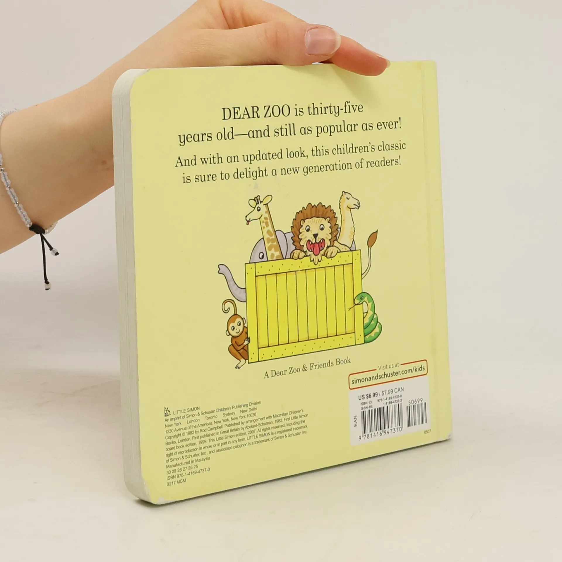 A child writes to the zoo for a pet. The zoo send a series of unsuitable pets, revealed behind flaps in the form of crates and packing cases. These animals are all sent back for different reasons, except the last one, which is perfect! Dear Zoo is twenty-five years old -- and still as popular as ever! And with an updated look, this children's classic is sure to delight a new generation of readers!