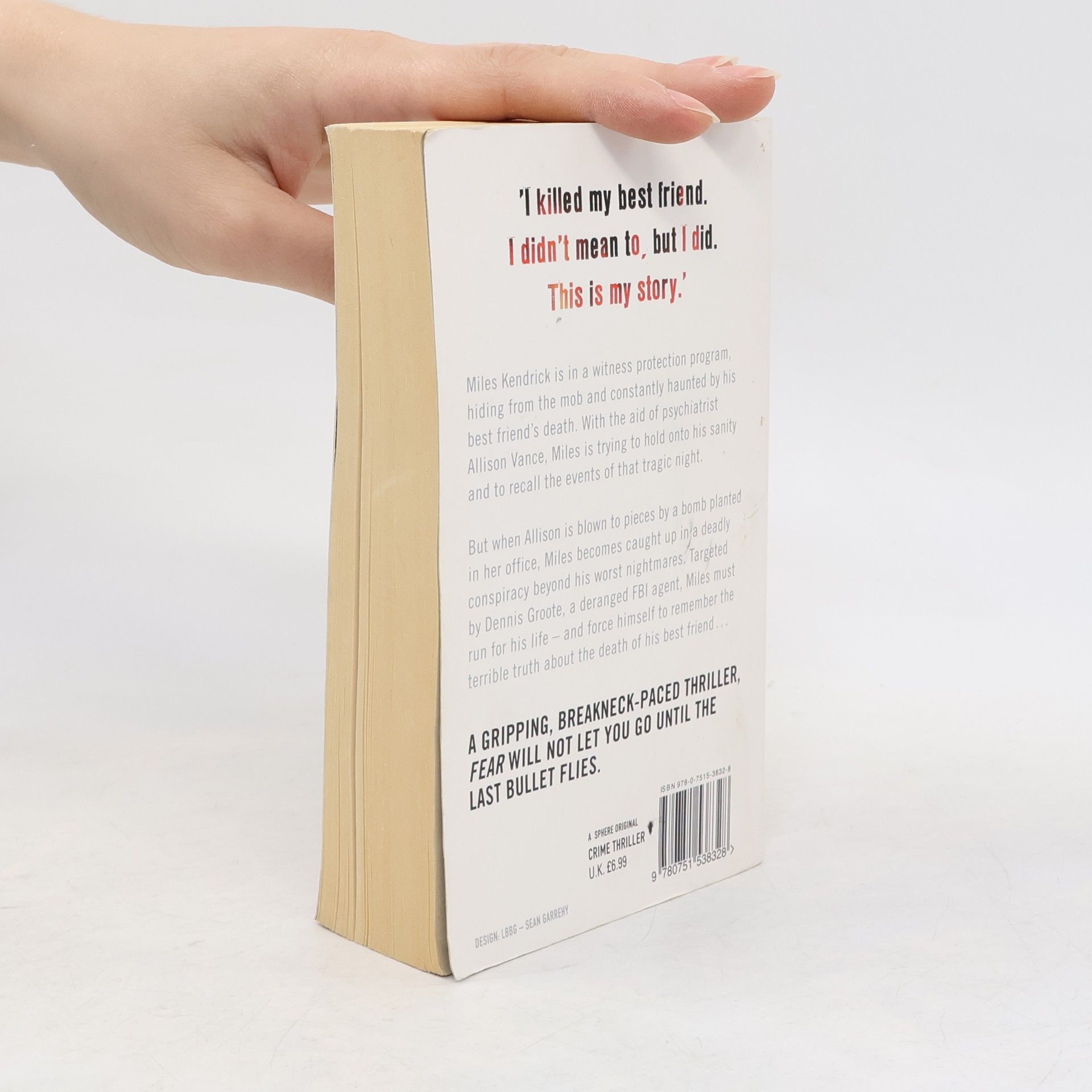 I killed my best friend. I didn't mean to, but I did. This is my story.' Miles Kendrick is in a witness protection programme, hiding from the mob and constantly haunted by his best friend's death. With the aid of psychiatrist Allison Vance, Miles is trying to hold onto his sanity and to recall the events of that tragic night. But when Allison is blown to pieces by a bomb planted in her office, Miles becomes caught up in a deadly conspiracy way beyond his worst nightmares. Pursued by an ex-FBI detective turned hitman and helped by a mentally broken ex-soldier and a reclusive woman whose life has been destroyed by violence, Miles is in a battle to get his life back - or just stay alive. A gripping, breakneck-paced thriller, FEAR will not let you go until the last bullet flies.