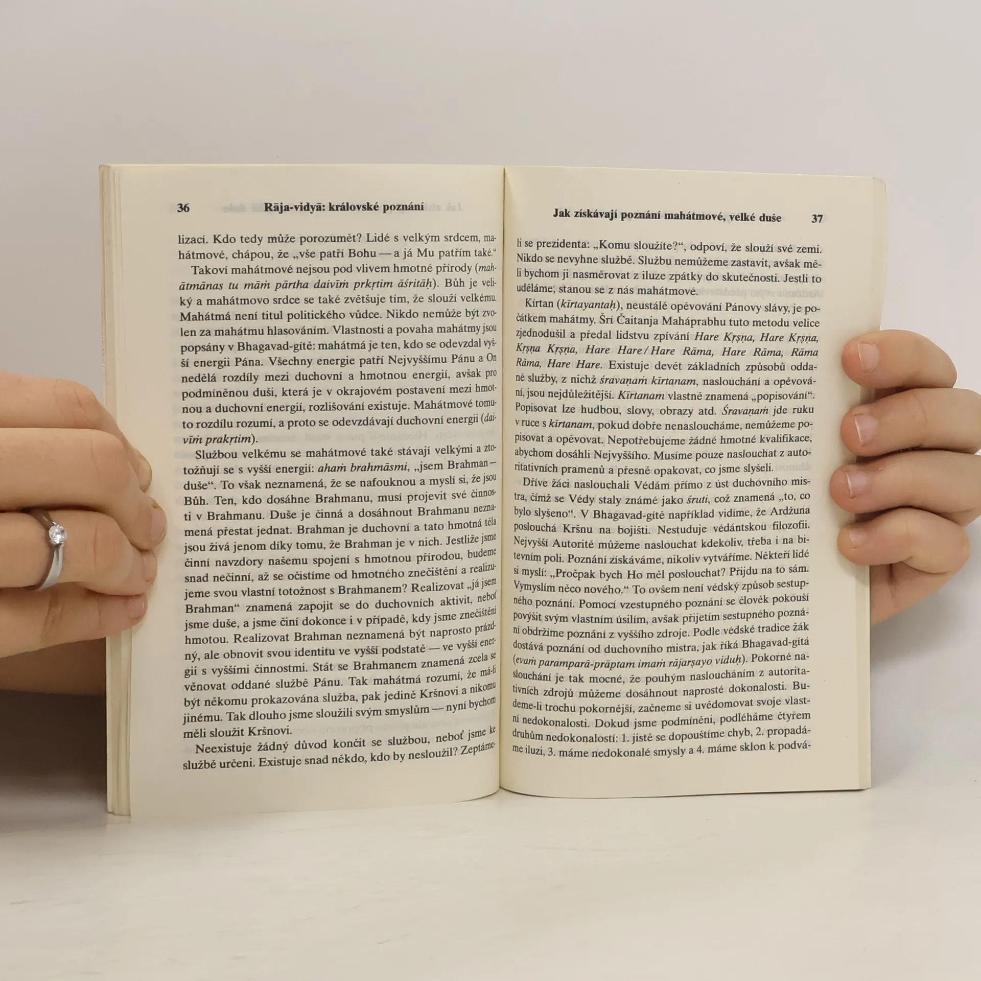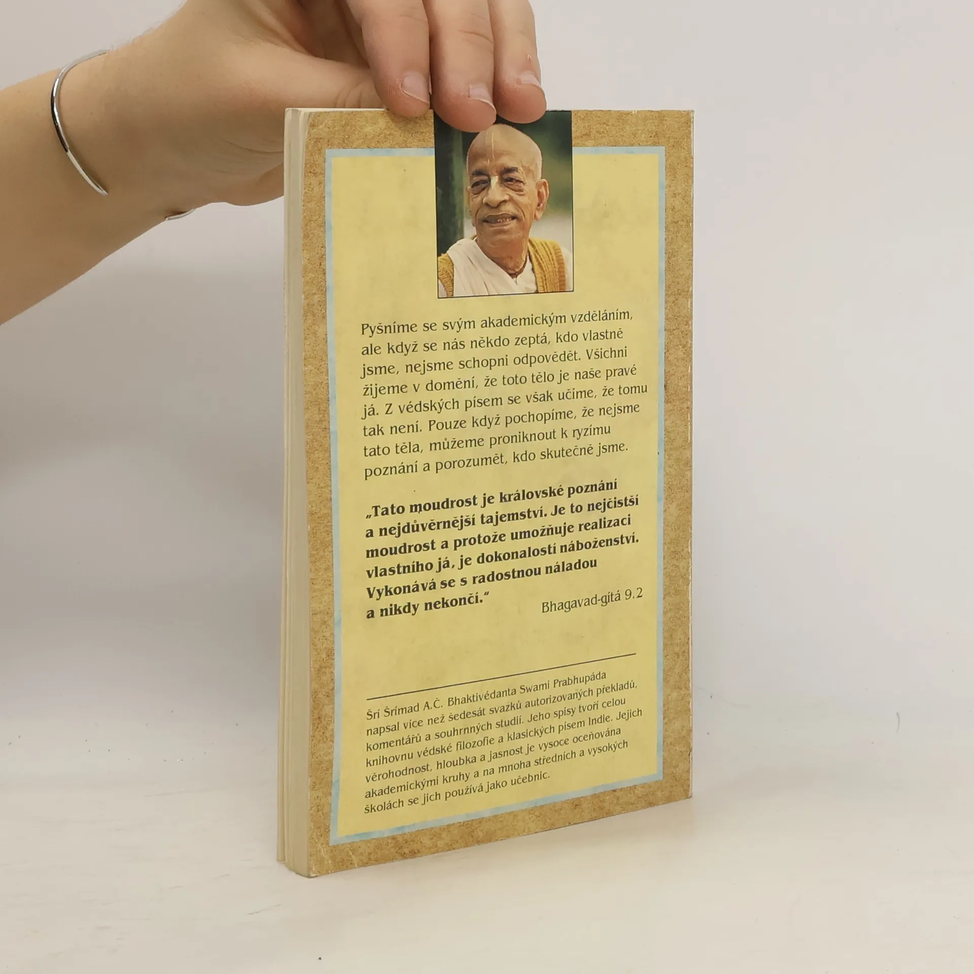 Pyšníme se svým akademickým vzděláním, ale když se nás někdo zeptá, kdo vlastně jsme, nejsme schopni odpovědět. Všichni žijeme v domnění, že toto tělo je naše pravé já. Z védských písem se však učíme, že tomu tak není. Pouze když pochopíme, že nejsme tato těla, můžeme proniknout k ryzímu poznání a porozumět, kdo jsme.