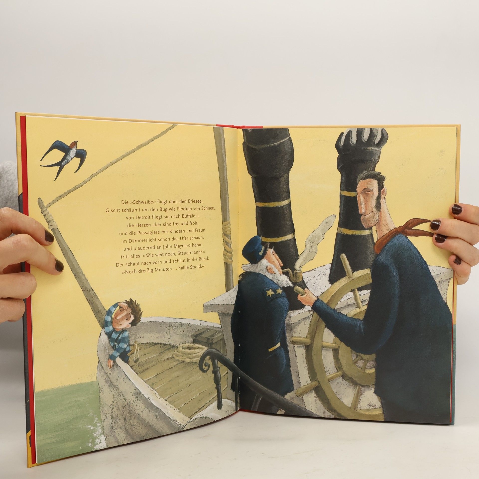 John Maynard! „Wer ist John Maynard?“ Wer Theodor Fontanes packende Ballade über den heldenhaften Steuermann einmal gelesen hat, wird diesen Namen nie mehr vergessen! John Maynard, der ein brennendes Passagierschiff in mutiger Fahrt sicher an den Strand von Buffalo steuert und somit alle an Bord rettet – nur sich selbst nicht. Aus sicherer Distanz und dennoch hautnah können kleine und große Leser das dramatische Geschehen miterleben: Im neuen Band der Reihe „Poesie für Kinder“ wird Fontanes traurig-schöne Ballade durch die großartigen Illustrationen von Tobias Krejtschi zu neuem Leben erweckt.