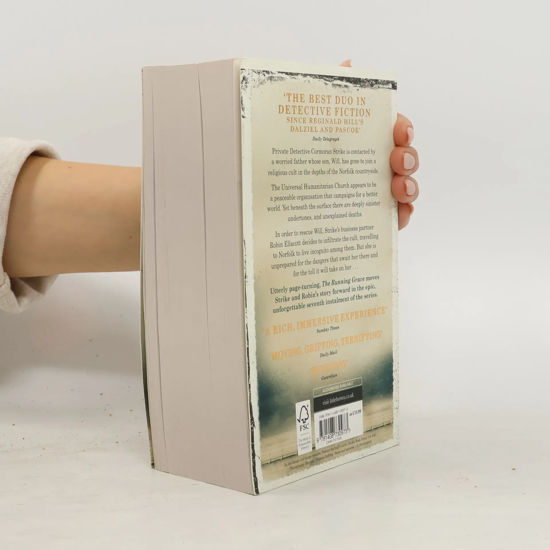 'The work of a master storyteller'Daily Telegraph'One of crime's most engaging duos'GuardianTHE SUNDAY TIMES CRIME NOVEL OF THE YEAR 2023 Private Detective Cormoran Strike is contacted by a worried father whose son, Will, has gone to join a religious cult in the depths of the Norfolk countryside.The Universal Humanitarian Church is, on the surface, a peaceable organisation that campaigns for a better world. Yet Strike discovers that beneath the surface there are deeply sinister undertones, and unexplained deaths.In order to try to rescue Will, Strike's business partner Robin Ellacott decides to infiltrate the cult and she travels to Norfolk to live incognito amongst them. But in doing so, she is unprepared for the dangers that await her there or for the toll it will take on her . . .Utterly page-turning, The Running Grave moves Strike and Robin's story forward in the epic, unforgettable seventh instalment of the series. PRAISE FOR THE STRIKE NOVELS 'A blistering piece of crime writing'Sunday Times 'Unputdownable'Daily Express'A page-turner that will keep you up all night'Observer 'Superb . . . an ingenious whodunnit'Sunday Mirror 'Strike and Robin are just as magnetic as ever'New York Times 'Outrageously entertaining'Financial Times