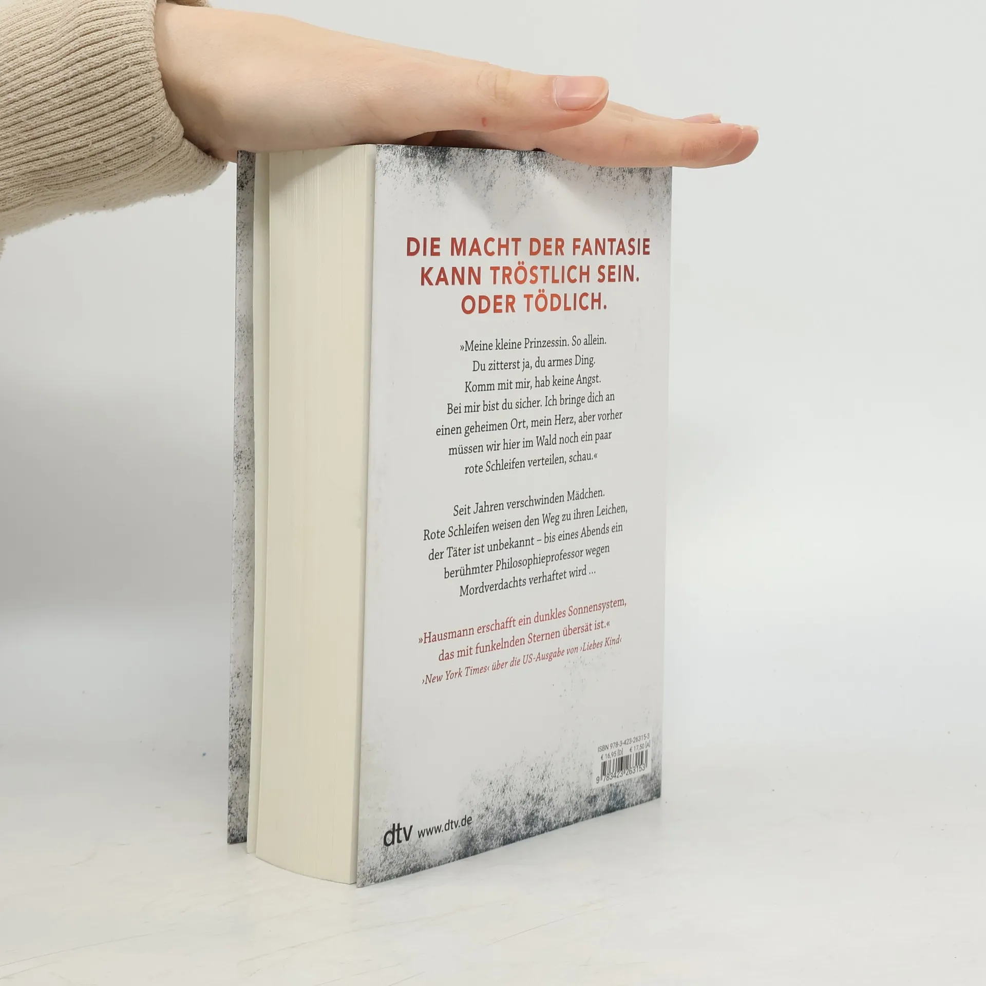 Die Macht der Gefühle kann tröstlich sein. Oder tödlich. Meine kleine Prinzessin. So allein. Du zitterst ja, du armes Ding. Komm mit mir, hab‘ keine Angst. Bei mir bist du sicher. Ich bringe dich an einen geheimen Ort, mein Herz, aber vorher müssen wir hier im Wald noch ein paar rote Schleifen verteilen, schau ... Seit vierzehn Jahren verschwinden Mädchen im Alter zwischen sechs und zehn Jahren. Rote Schleifenbänder weisen der Polizei den Weg zu ihren Leichen. Vom Täter fehlt seit vierzehn Jahren jede Spur. Eines Abends wird der international renommierte Philosophieprofessor und Anthropologe Walter Lesniak im Beisein seiner Tochter Ann verhaftet. Die Anklage: zehn Morde an jungen Mädchen. „Professor Tod“ titelt die Boulevardpresse. Doch Ann wird die Unschuld ihres Vaters beweisen. Für sie und die LeserInnen beginnt eine Reise in die dunkelsten Räume der menschlichen Seele … Von der Bestseller-Autorin Romy Hausmann sind weitere spannende Thriller bei dtv erschienen (»Liebes Kind«, »Marta schläft«) sowie das Sachbuch »TRUE CRIME. Der Abgrund in dir«.