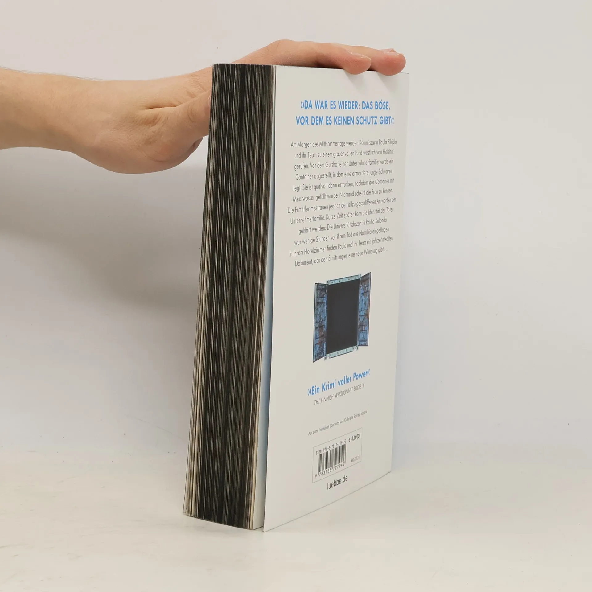 Am Morgen des Mittsommertags werden Kommissarin Paula Pihlaja und ihr Team zu einem grauenvollen Fund westlich von Helsinki gerufen. Vor dem Gutshof einer Unternehmerfamilie wurde ein Container abgestellt, in dem eine ermordete dunkelhäutige Frau liegt. Sie ist qualvoll darin ertrunken, nachdem Meerwasser eingefüllt wurde. Niemand scheint die Frau zu kennen. Die Ermittler misstrauen jedoch den allzu geschliffenen Antworten der Unternehmerfamilie. Kurze Zeit später kann die Identität der Toten geklärt werden: Die Universitätslehrerin Rauha Kalando war wenige Stunden vor ihrem Tod aus Namibia eingeflogen. In ihrem Hotelzimmer liegt ein Dokument, unterschrieben vom ehemaligen Unternehmenschef ...