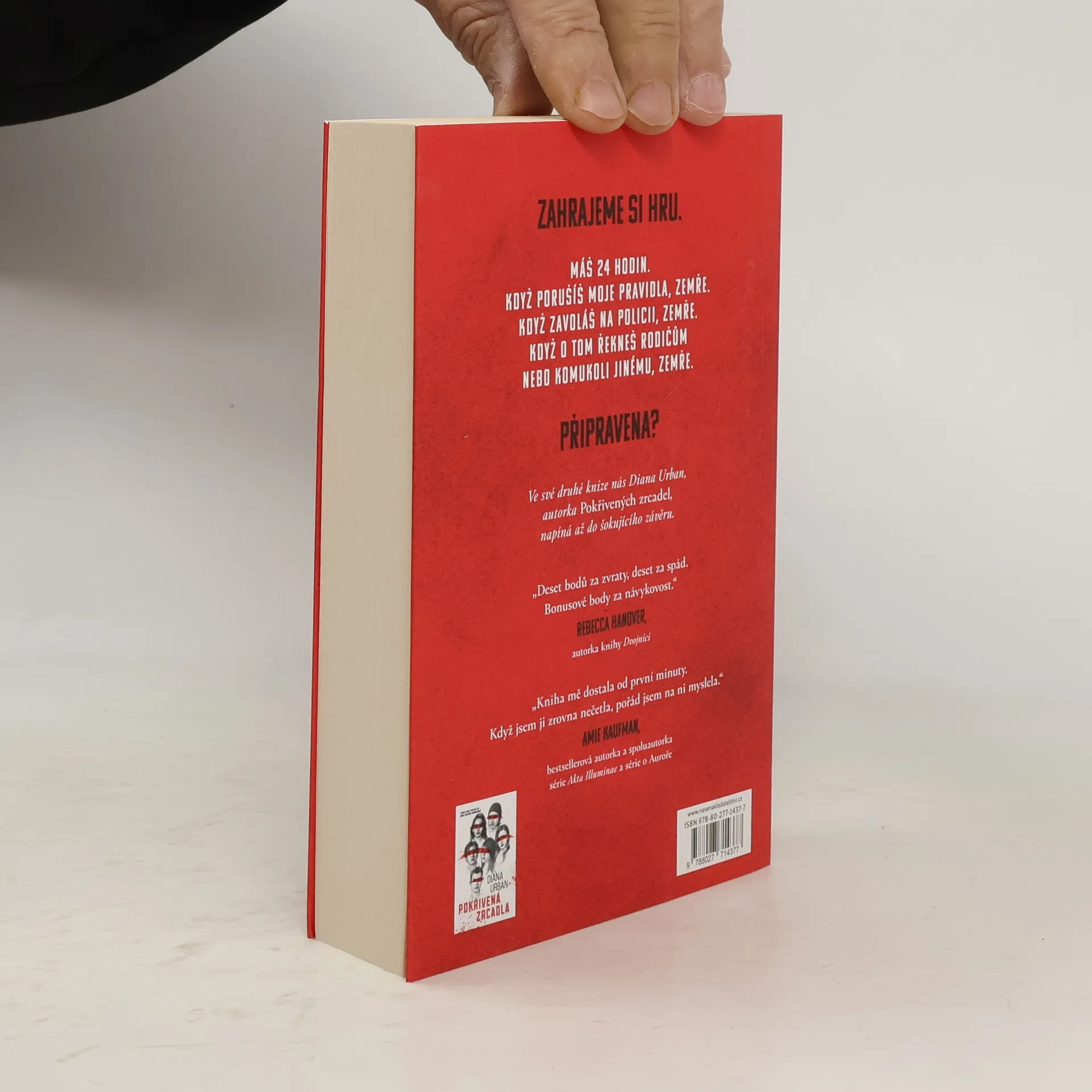 Zahrajeme si hru. Máš 24 hodin. Když porušíš moje pravidla, zemře. Když zavoláš na policii, zemře. Když o tom řekneš rodičům nebo komukoli jinému, zemře. Připravena? Když Crystal Donovanová dostane z neznámé aplikace zprávu s nahrávkou svázané sestry s roubíkem v ústech, přistoupí na únoscovu hru. Zpočátku ji nutí do naprosto bizarních úkolů: ukrást test a dát ho do cizí skříňky, upéct brownies, uskutečnit žertovný telefonát. Pak ale Crystal dojde, že každý z úkolů má za cíl zranit – nebo zabít – její přátele. Jednoho po druhém. Jenže když odmítne pokračovat, únosce zabije její sestru. Snaží se někdo vyřadit její tým z boje o účast v turnaji ve videohře? Nebo únosce odhalil tajemství z minulosti a chce, aby pykali za to, co udělali? Crystal se musí rozhodnout. Přátelé, nebo sestra? Musí odhalit pravdu a najít způsob, jak únosce obehrát… dřív, než bude pozdě. Ve své druhé knize nás Diana Urban, autorka Pokřivených zrcadel, napíná až do šokujícího závěru.