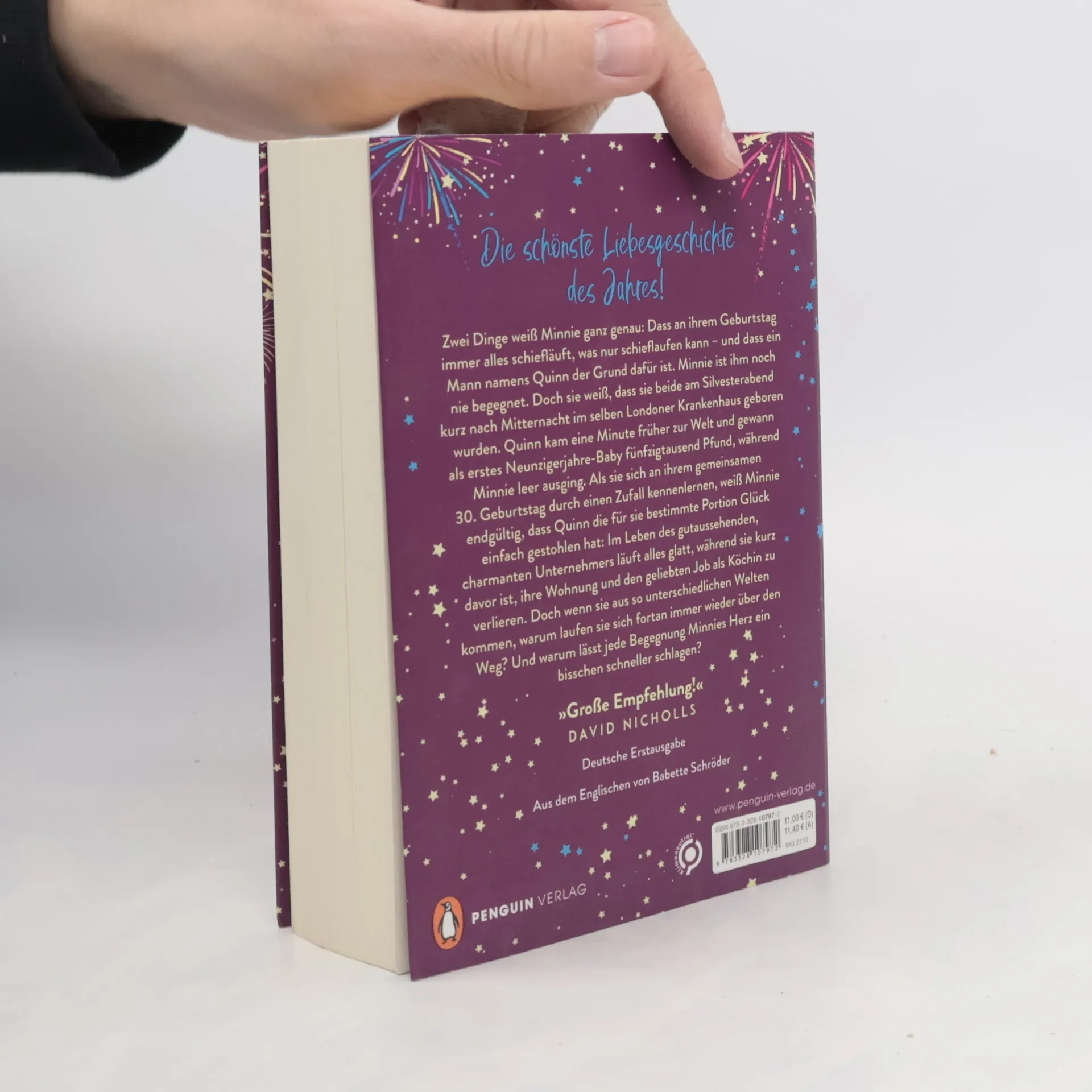 Zwei Menschen. Ein Schicksal. Eine unvergessliche Liebesgeschichte. Zwei Dinge weiß Minnie ganz genau: Dass an ihrem Geburtstag immer alles schiefläuft, was nur schieflaufen kann – und dass ein Mann namens Quinn der Grund dafür ist. Minnie ist ihm noch nie begegnet. Doch sie weiß, dass sie beide am Silvesterabend kurz nach Mitternacht im selben Londoner Krankenhaus geboren wurden. Quinn kam eine Minute früher zur Welt und gewann als erstes Neunzigerjahre-Baby fünfzigtausend Pfund, während Minnie leer ausging. Als sie sich an ihrem gemeinsamen 30. Geburtstag durch einen Zufall kennenlernen, weiß Minnie endgültig, dass Quinn die für sie bestimmte Portion Glück einfach gestohlen hat: Im Leben des gutaussehenden, charmanten Unternehmers läuft alles glatt, während sie kurz davor ist, ihre Wohnung und den geliebten Job als Köchin zu verlieren. Doch wenn sie aus so unterschiedlichen Welten kommen, warum laufen sie sich fortan immer wieder über den Weg? Und warum lässt jede Begegnung Minnies Herz ein bisschen schneller schlagen? »Genau richtig für einen Tag mit Kuscheldecke und heißer Schokolade. Unglaublich romantisch! Ein Buch wie eine Umarmung.« Josie Silver Das Taschenbuch in zauberhaft funkelnder Ausstattung.