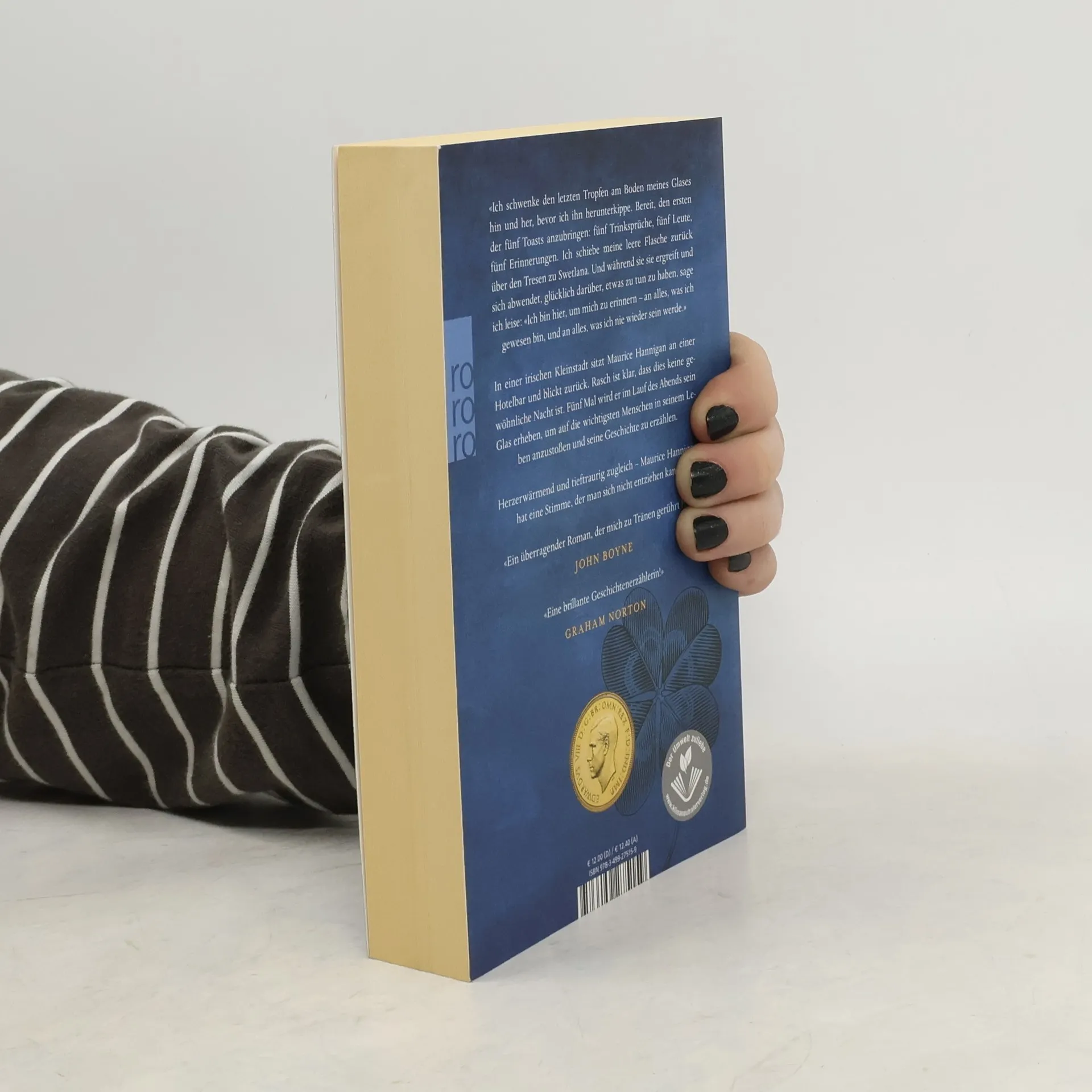 Fünf Drinks, fünf Menschen, ein ganzes Leben. Der hochgelobte Nr.-1-Bestseller aus Irland In einer irischen Kleinstadt sitzt Maurice Hannigan, 84 Jahre alt, an einer Hotelbar und blickt auf sein Leben zurück. Fünf Mal wird er im Lauf der Nacht sein Glas erheben, um auf die Menschen anzustoßen, die ihm am meisten bedeutet haben: seinen Bruder Tony, der jung verstarb, seine geliebte Tochter Molly, seine Schwägerin Noreen, der er vieles zu verdanken hat, seinen Sohn Kevin, der mittlerweile in den USA lebt – und seine Frau und große Liebe Sadie. Maurice erzählt von Momenten der Freude und des Zweifels. Und von der Tragödie seines Lebens, die er vor allen verborgen hielt... Ein Roman über Liebe und Verlust. Traurig und tröstend zugleich hallt die Stimme seines Helden noch lange nach.