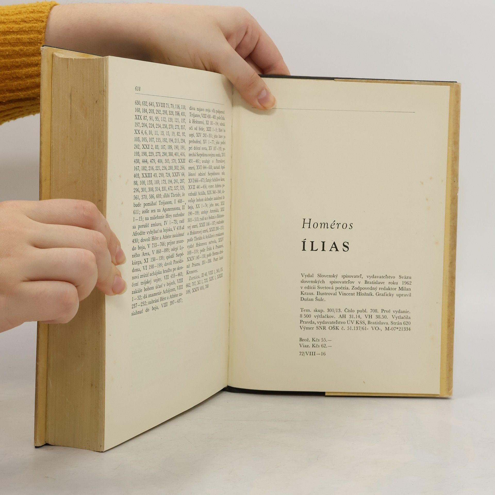 Homérova Ílias je najstarším zachovaným literárnym dielom v Európe, epickým opisom časti bojov vo vojne pri Tróji. Homéros čerpal námet z čias, keď Gréci víťazstvom ukončili desaťročnú vojnu s Trójanmi, pravdepodobne koncom 13. alebo začiatkom 12. storočia pred Kr. Dej sa sústreďuje na desiaty rok bojov pred Trójou. Konflikt medzi Grékmi a Trójanmi vyvrcholil únosom spartskej kráľovnej Heleny trójskym princom Paridom. Vojvodca Agamemnón zjednotil armádu z mykénskeho Grécka, aby potrestal Trójanov a zničil ich hradisko, no Trójania sa dlhodobo bránili. Príbeh sa začína konfliktom medzi Agamemnonom a najodvážnejším gréckym bojovníkom Achilleom, ktorého Agamemnón poníži pred celým vojskom. Po urážke sa Achilles rozhodne neparticipovať v bojoch. Agamemnónovo víťazstvo sa zdá byť na dosah, avšak bohovia majú iné plány a zasiahnu do vojny nečakaným spôsobom. Kniha obsahuje úvodnú štúdiu Miloslava Okála, ktorá sa zameriava na literárnu stránku eposu, a prvú časť štúdie Ivana Janeka, ktorá skúma historický rámec mykénskej epochy a približuje jednotlivé časti eposu.
