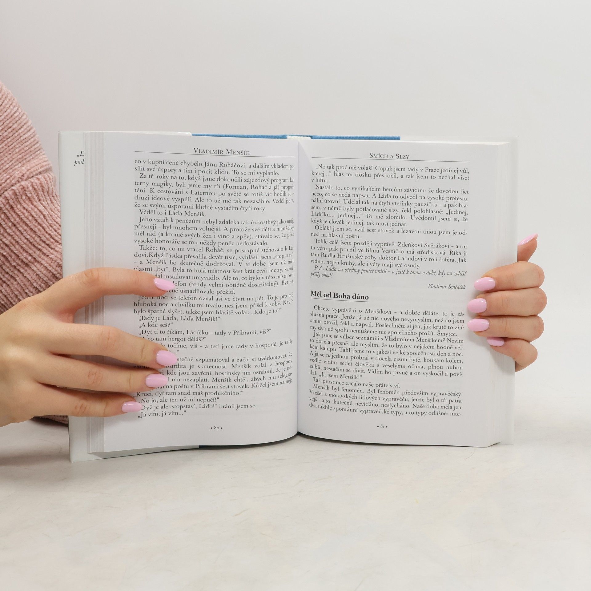 Snaha nahradit Vladimíra Menšíka na české umělecké scéně (především té veseloherní) se už léta pojí se stále většími rozpaky. A to navzdory tomu, že od jeho smrti uplynulo už osmnáct let. I proto jsem se autorka rozhodla pokračovat v práci na vzpomínkové knížce sepsané k poctě tohoto muže. Při zapisování nových příběhů (vzpomínek, studií a reportáží) jsem opět setkala s vlídností, úsměvem - a s téměř hmatatelnou radostí ze vzpomínek na Menšíka. Vždy s upřímnou snahou definovat jeho čestné místo na českém hereckém nebi. To vzácné místo, které je dodnes prázdné