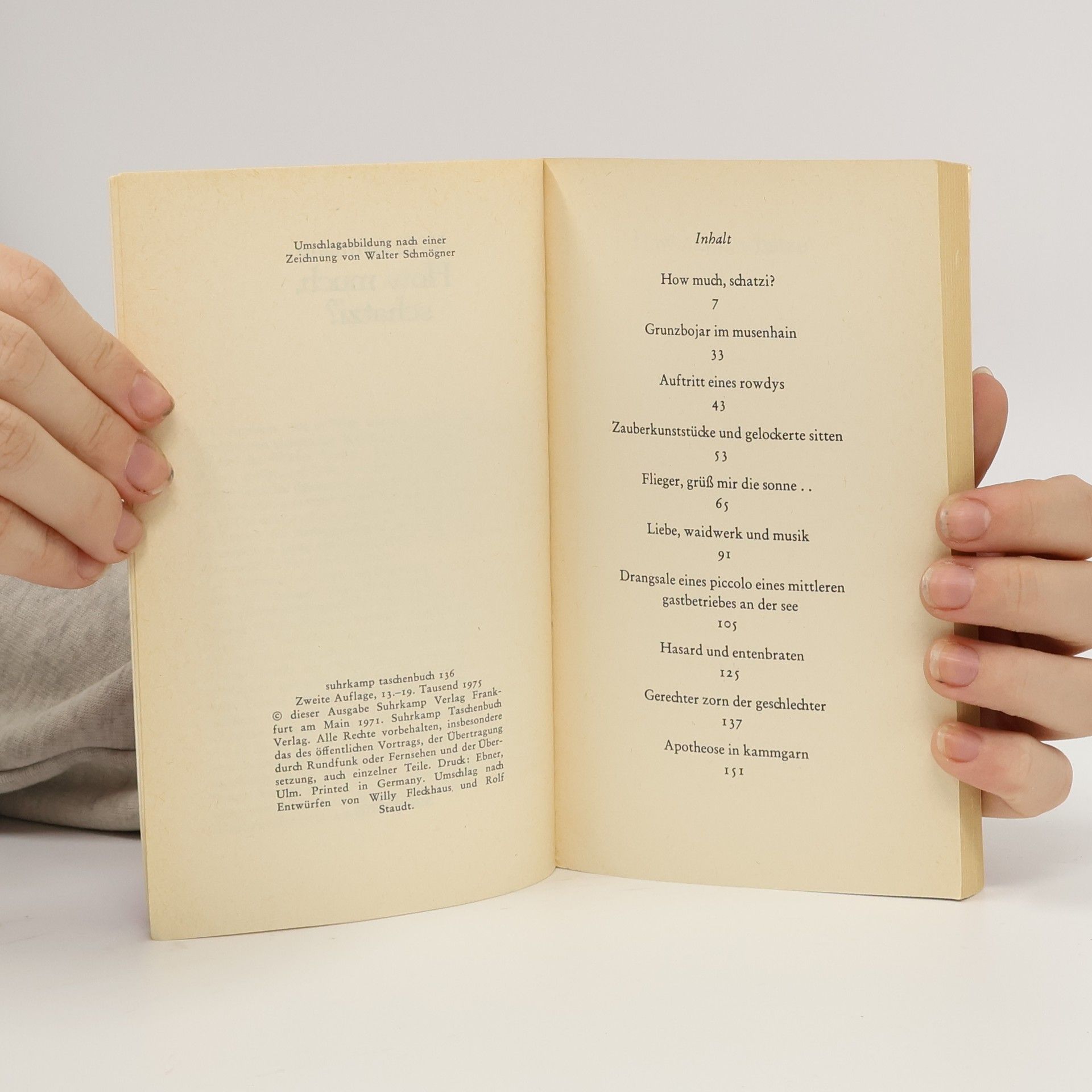 Die Geschichten mit dem Titel How much, schatzi? sind mehr als etwas Neues von Artmann. Sie sind ein neuer Artmann. Er verwendet nicht mehr diese erlesene Sprache, die schöne Form. Sondern das, was bislang als unästhetisch gemieden wurde: das Pathos und die Platitüde, die derbe Drastik und das Melodramatische. Und dies wiederum, natürlich, als sprachliches Experiment, als Zusammenschau verschiedener lebender und toter Sprachen. Da gibt es Agneta Tigges und El Zorro, die morose Moreau und die schluchzende Justine, einen halbwadigen Pseudolindbergh und einen Barmixer mit Guntersachskoteletten.