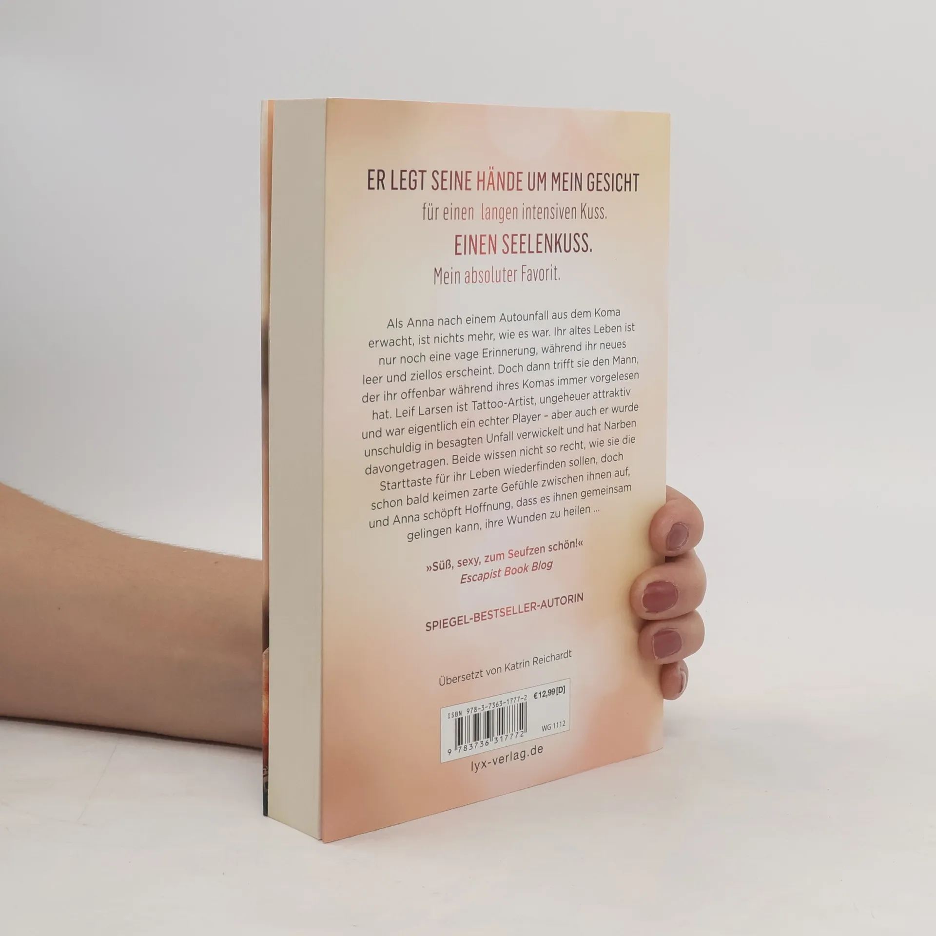 Er legt seine Hände um mein Gesicht für einen langen intensiven Kuss. Einen Seelenkuss. Mein absoluter Favorit. Als Anna nach einem Autounfall aus dem Koma erwacht, ist nichts mehr, wie es war. Ihr altes Leben ist nur noch eine vage Erinnerung, während ihr neues leer und ziellos erscheint. Doch dann trifft sie den Mann, der ihr offenbar während ihres Komas immer vorgelesen hat. Leif Larsen ist Tattoo-Artist, ungeheuer attraktiv und war eigentlich ein echter Player - aber auch er wurde unschuldig in besagten Unfall verwickelt und hat Narben davon getragen. Beide wissen nicht so recht, wie sie die Starttaste für ihr Leben wiederfinden sollen, doch schon bald keimen zarte Gefühle zwischen ihnen auf, und Anna schöpft Hoffnung, dass es ihnen gemeinsam gelingen kann, ihre Wunden zu heilen ... „Süß, sexy, zum Seufzen schön!“ ESCAPIST BOOK BLOG