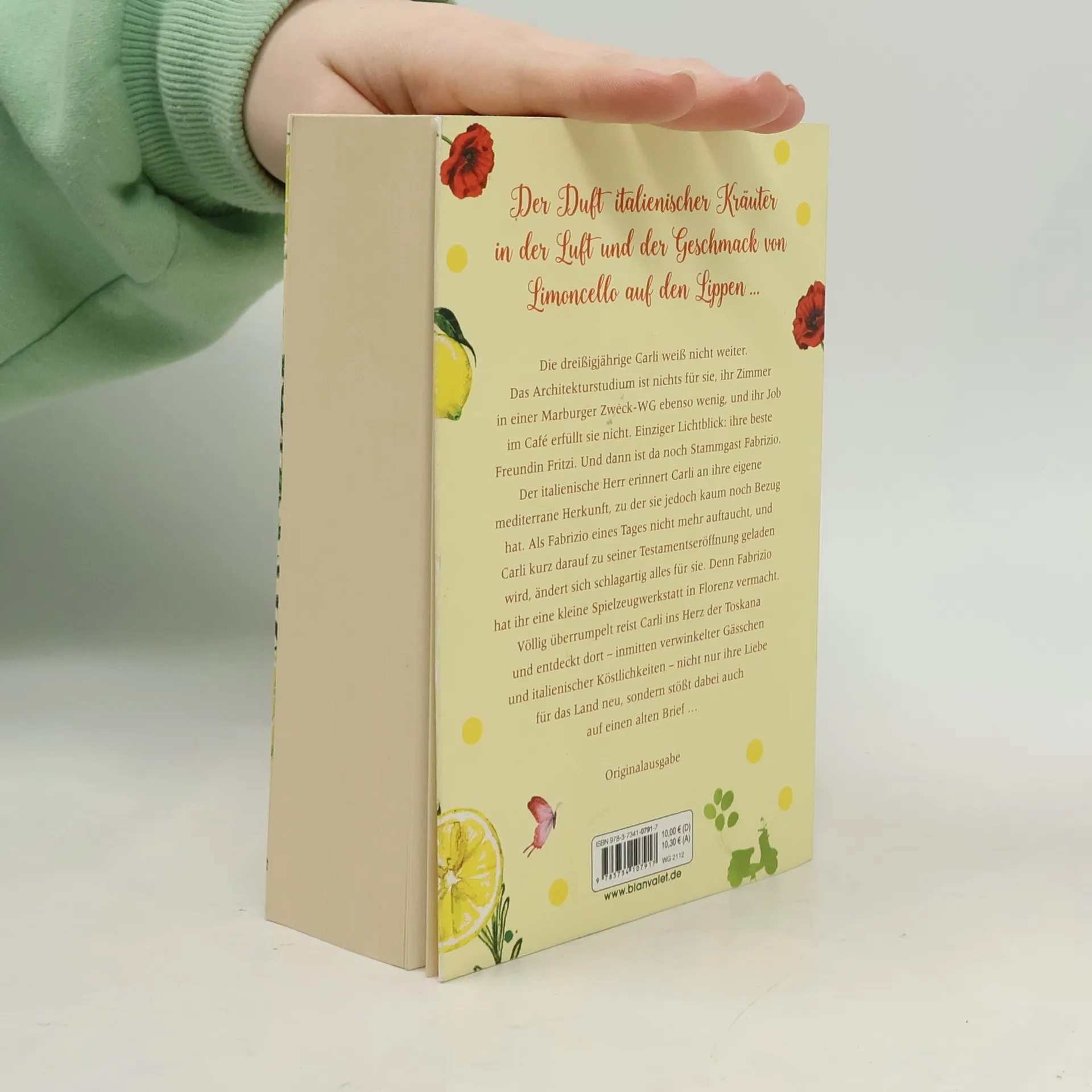 Der Duft italienischer Kräuter in der Luft, warmer Toskanawind auf der Haut und der Geschmack von Limoncello auf den Lippen … Die dreißigjährige Carli weiß nicht weiter: Das Architekturstudium ist nichts für sie, ihr Zimmer in einer Marburger Zweck-WG ebenso wenig, und ihr Job im Café erfüllt sie nicht. Einziger Lichtblick: ihre beste Freundin Fritzi. Und dann ist da noch Stammgast Fabrizio. Der italienische Herr erinnert Carli an ihre eigene mediterrane Herkunft, zu der sie jedoch kaum noch Bezug hat. Als Fabrizio eines Tages nicht mehr auftaucht, und Carli kurz darauf zu seiner Testamentseröffnung geladen wird, ändert sich schlagartig alles für sie: Denn Fabrizio hat ihr eine kleine Spielzeugwerkstatt in Florenz vermacht. Völlig überrumpelt reist Carli ins Herz der Toskana und entdeckt dort – inmitten verwinkelter Gässchen und italienischer Köstlichkeiten – nicht nur ihre Liebe für das Land neu, sondern stößt dabei auch auf einen alten Brief …